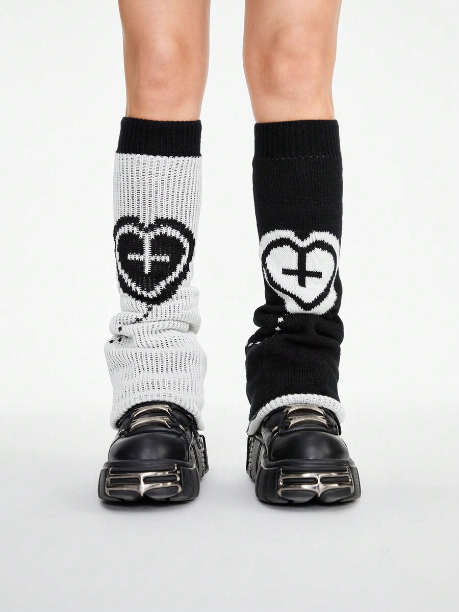 Goth 1pair Black And White Cross Heart Two-Way Wear Stockings