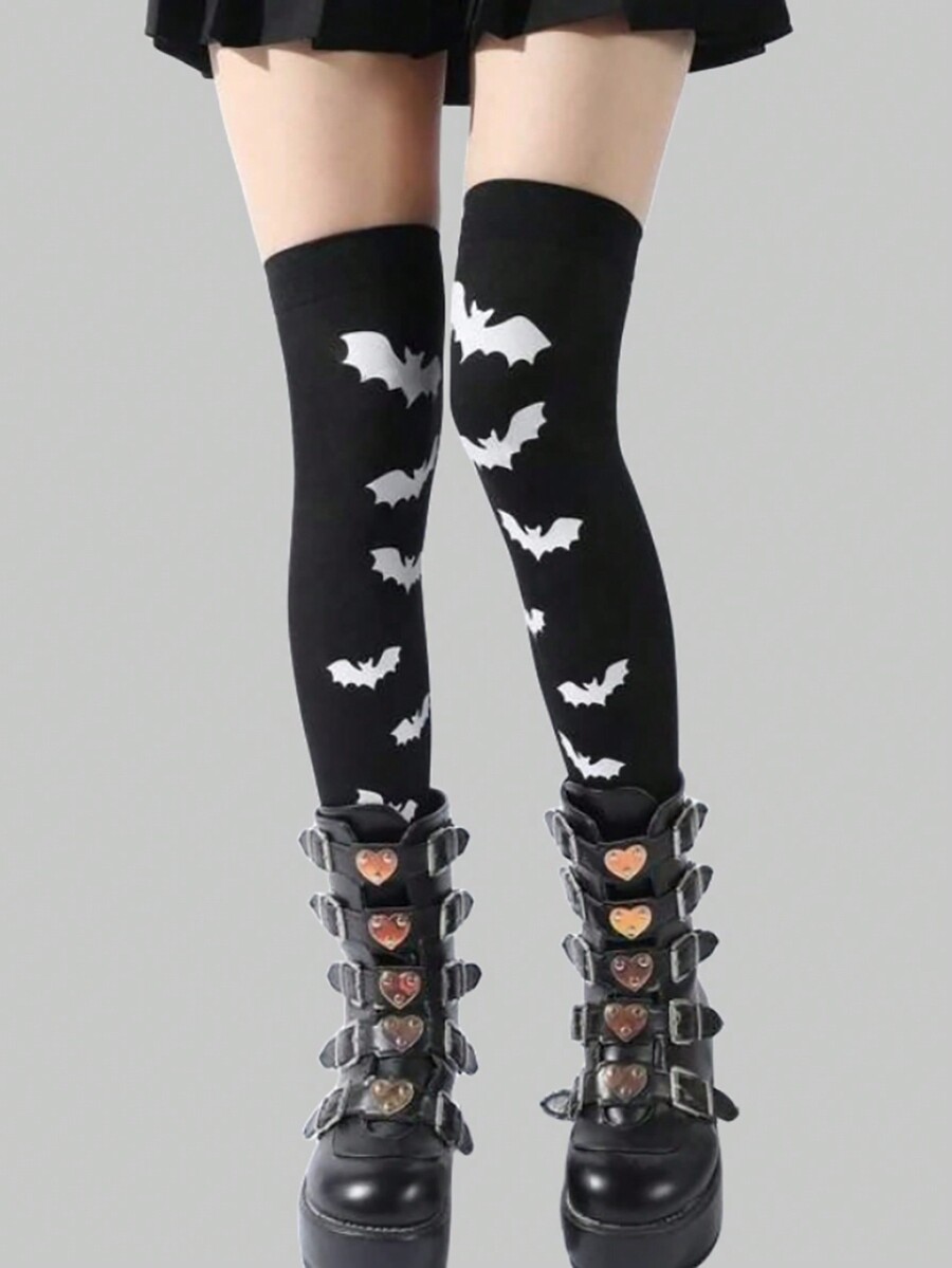 Goth 1pair Women Bat Pattern Over The Knee Socks