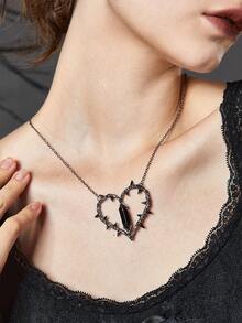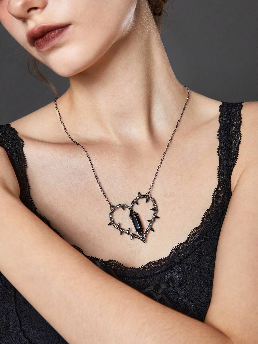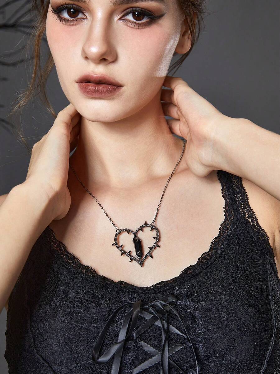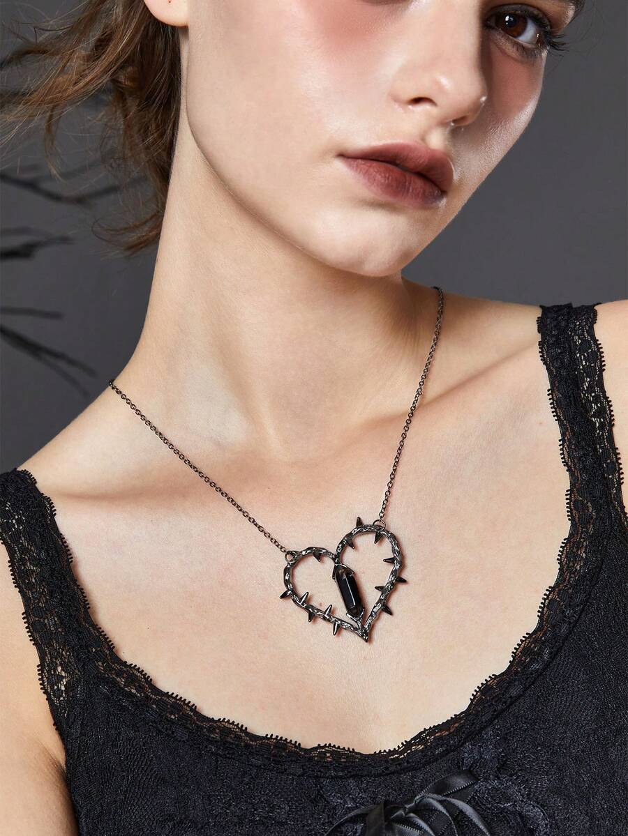 Goth 1pc Dark Spike Design Heart Pendant Necklace