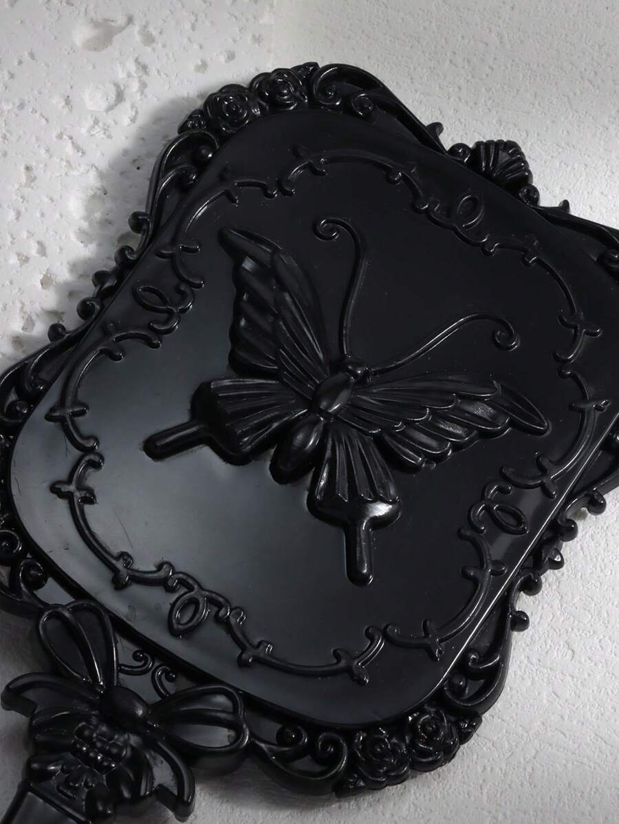 Goth 1pc Dark Vintage Butterfly Pattern Compact Mirror, Portable Design For Travel, Girlfriend Gift, Halloween