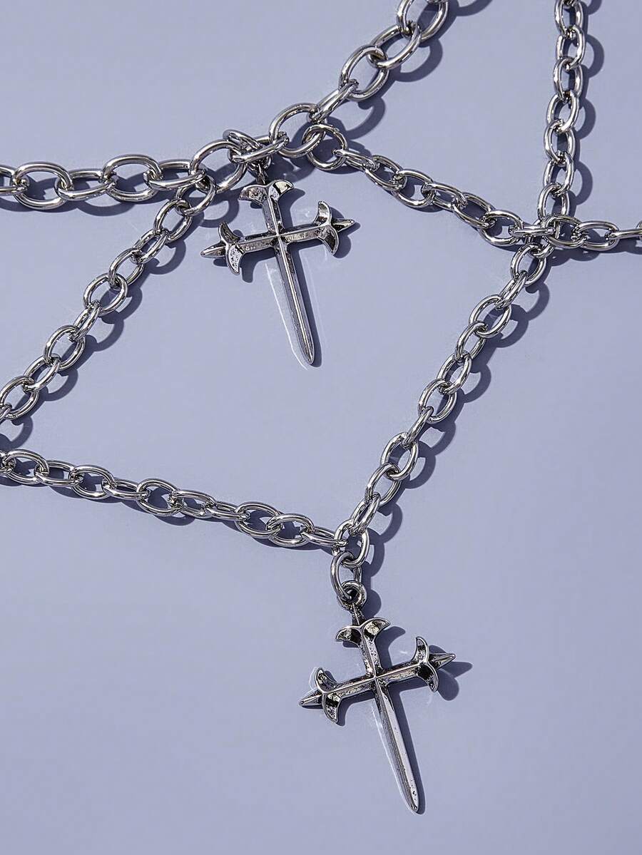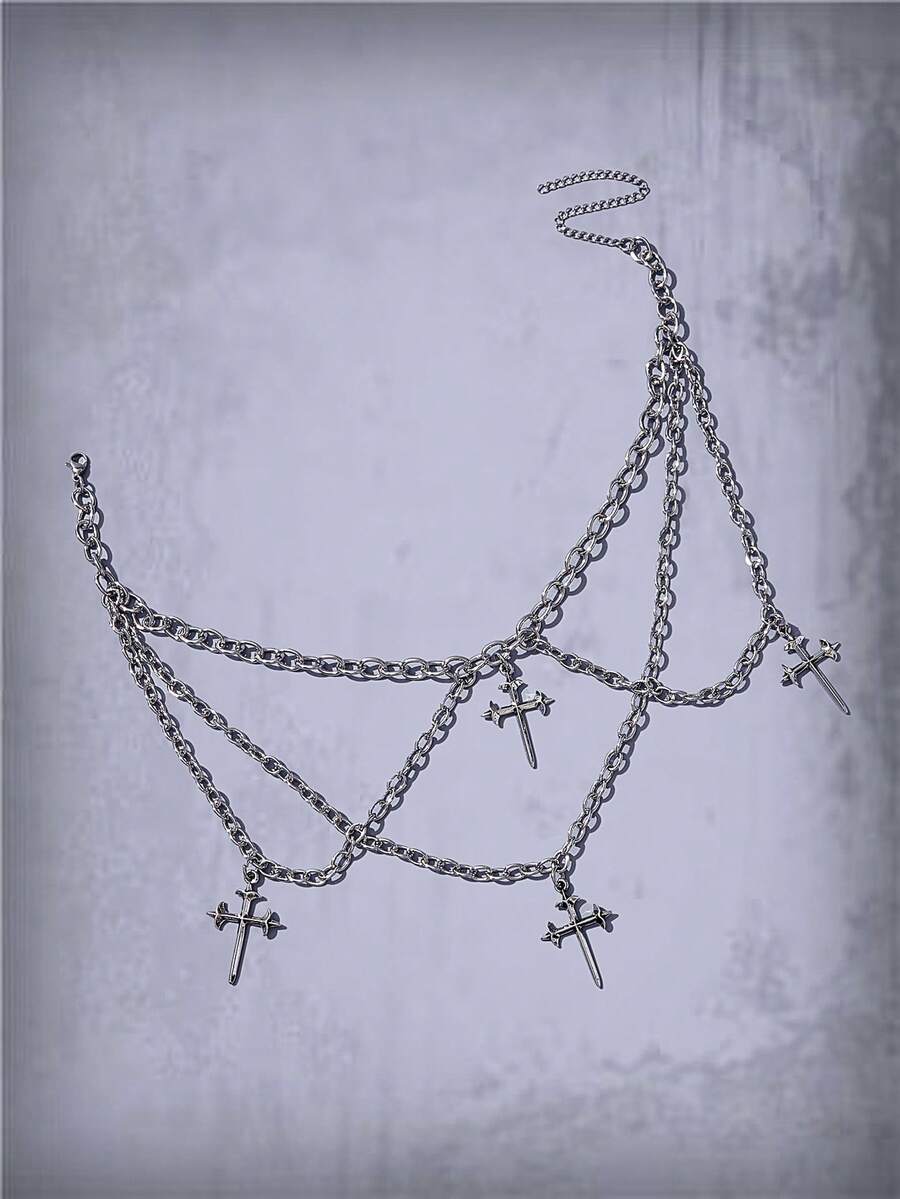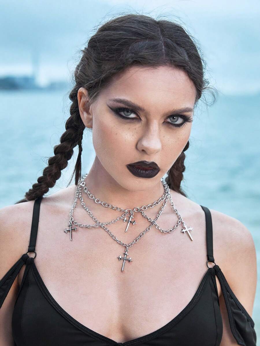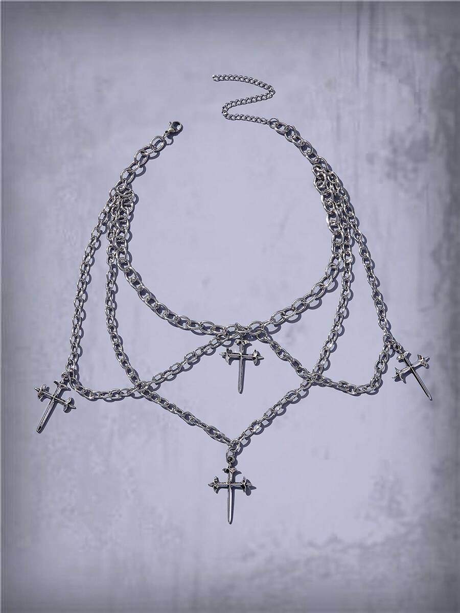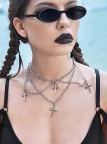 Goth 1pc Funky Zinc Alloy Cross Charm Layered Choker For Women For Daily Decoration