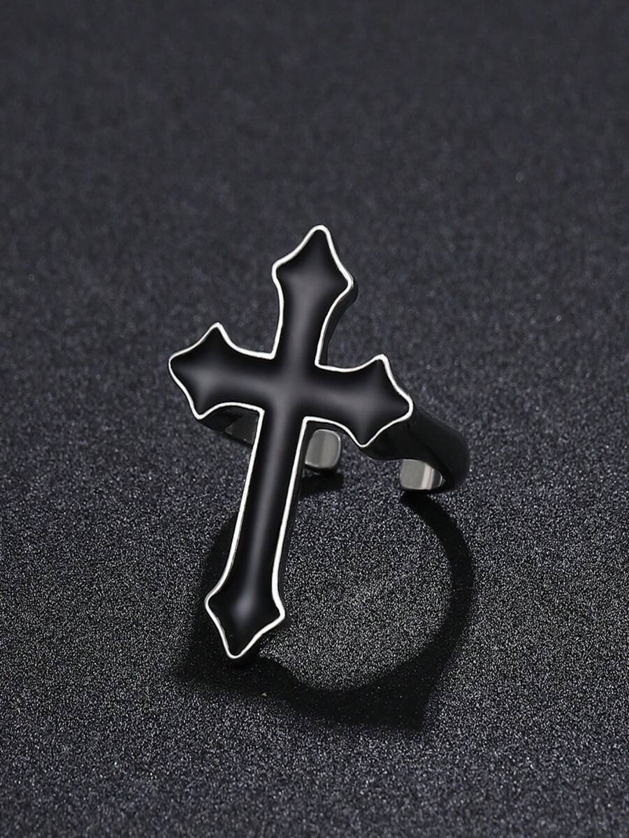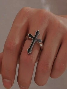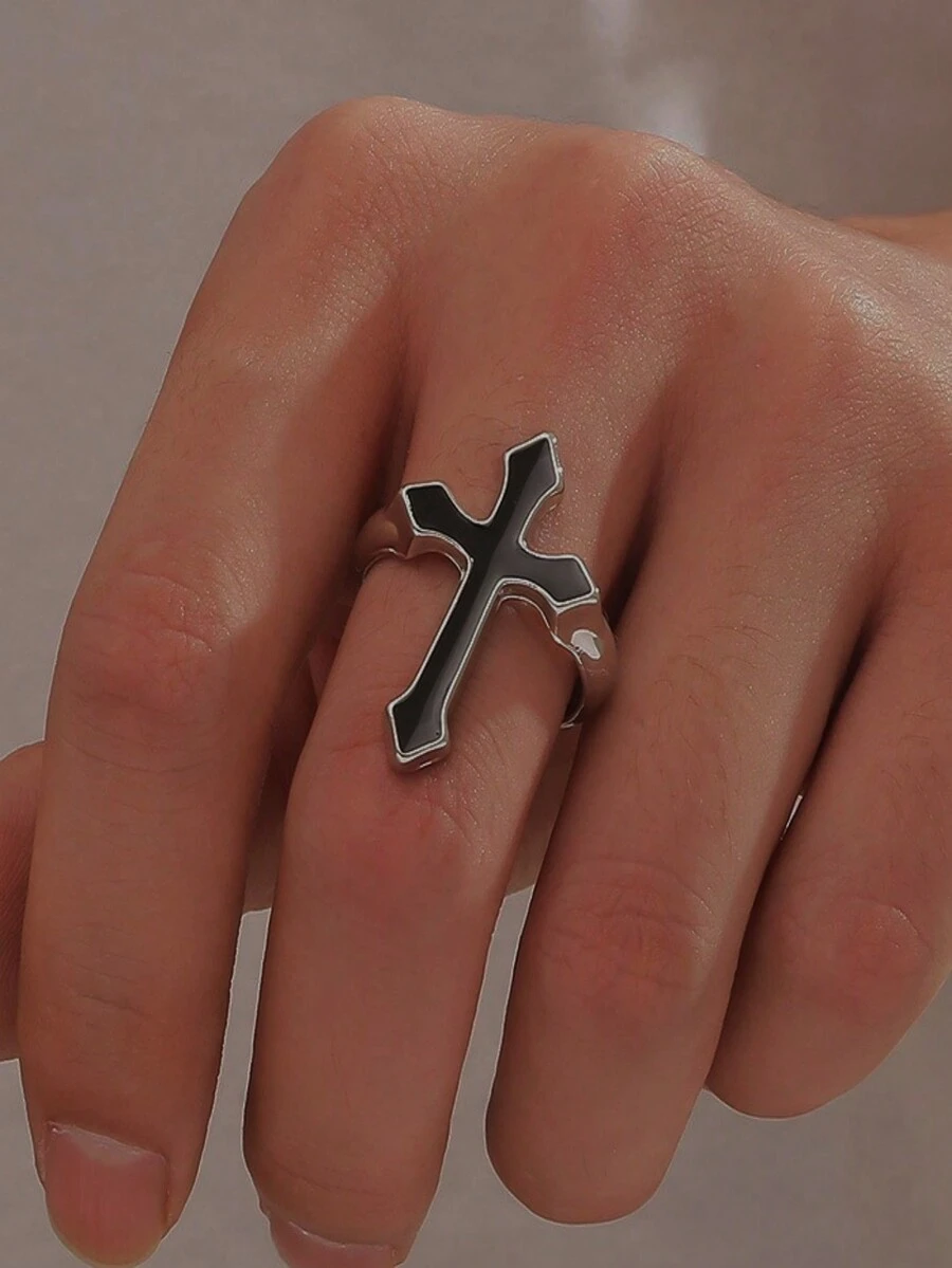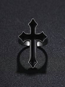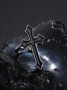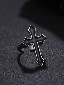 Goth 1pc Funky Zinc Alloy Cross Decor Cuff Ring For Guys For Daily Decoration