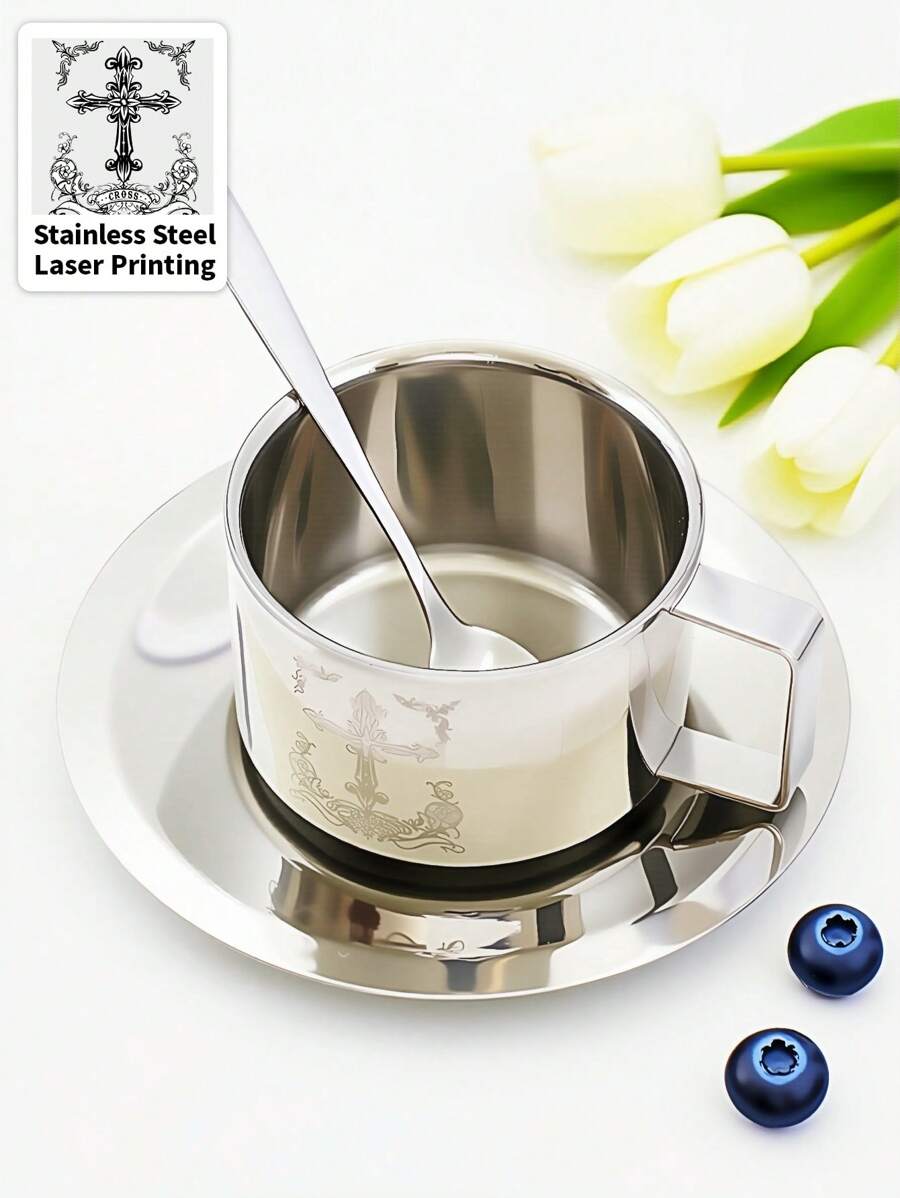 1pc Gothic 200ml Stainless Steel Coffee Cup,Gothic Coffee Cup Set, Cross Engraving Pattern, Coffee Cup Set, Vintage Coffee Tea Cup, Retro,Suitable For Restaurant Or Home,Home Decor
