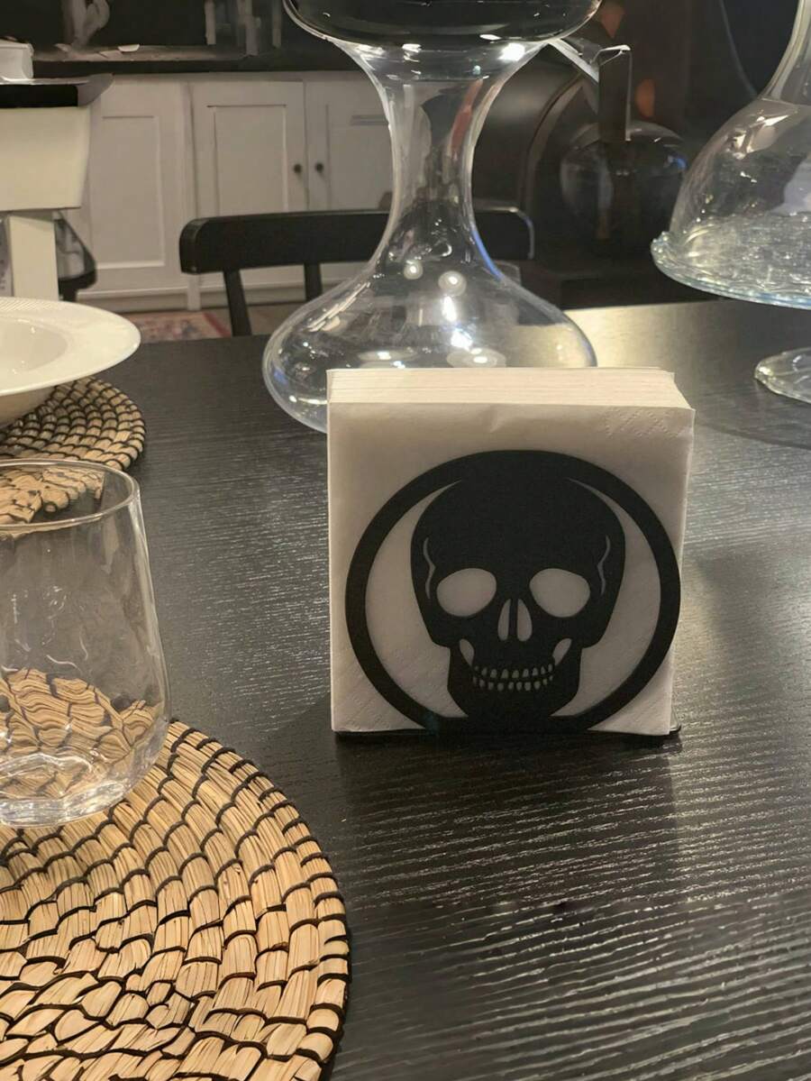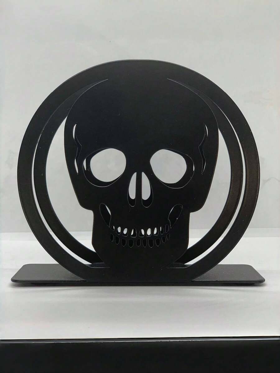 1pc Gothic Style Stainless Steel Hollow Napkin Holder, Skull Napkin Holder Napkin And Tissue Storage Rack, Storage Rack, Suitable For Living Room, Kitchen, Bathroom, Restaurant, Dormitory, Bedroom, Home Decoration