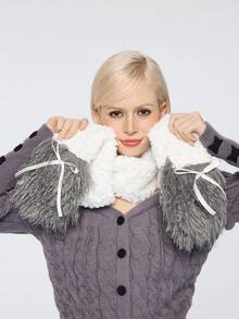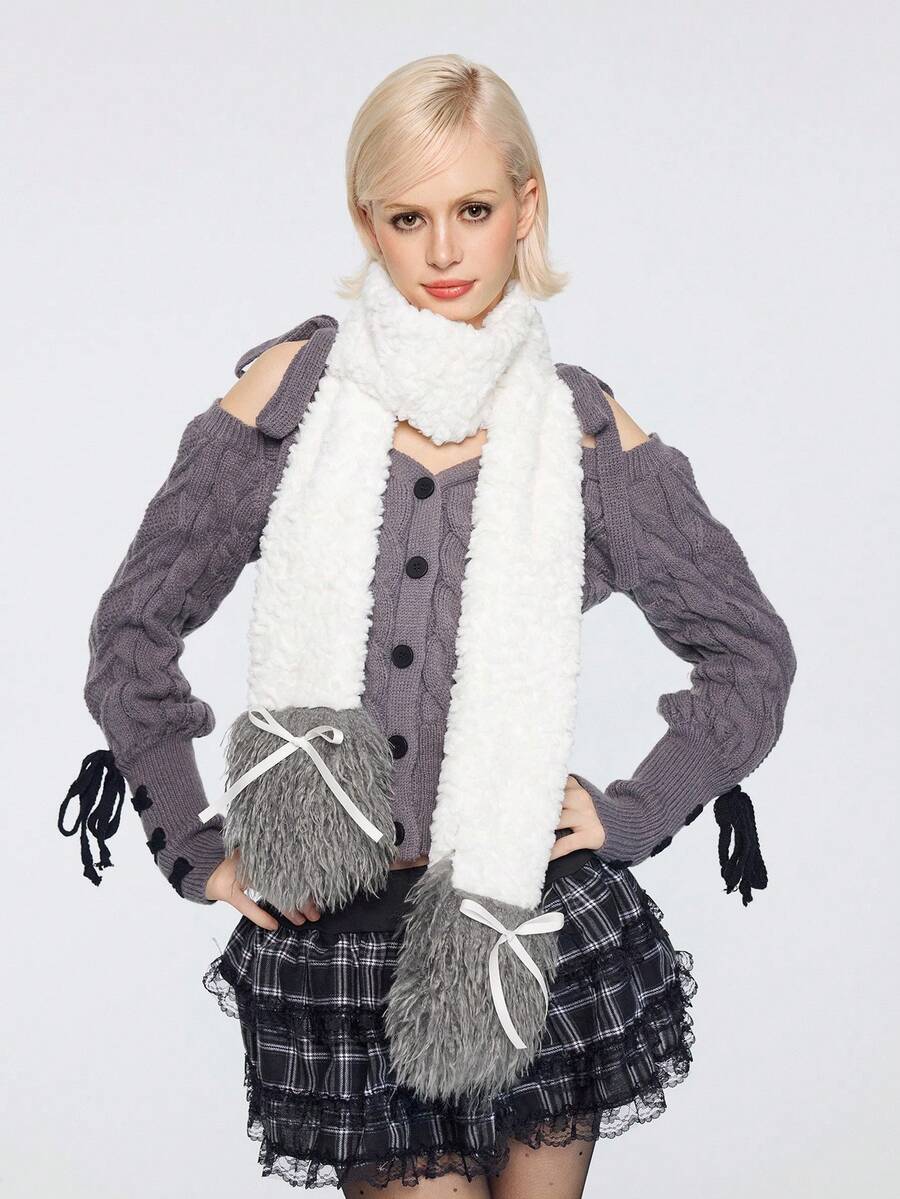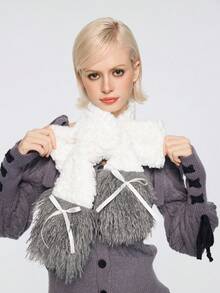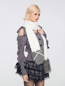 Goth 1pc Gray & White Y2K Babe Kawaii Sweet Bow Contrast Color Cozy Fashion Scarf, Suitable For School, Shopping, Travel, Christmas And More