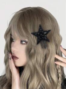 Goth 1pc Punk Rock Beaded Pentagram Chain Tassel Hair Clip For Women