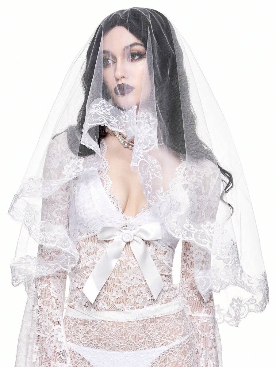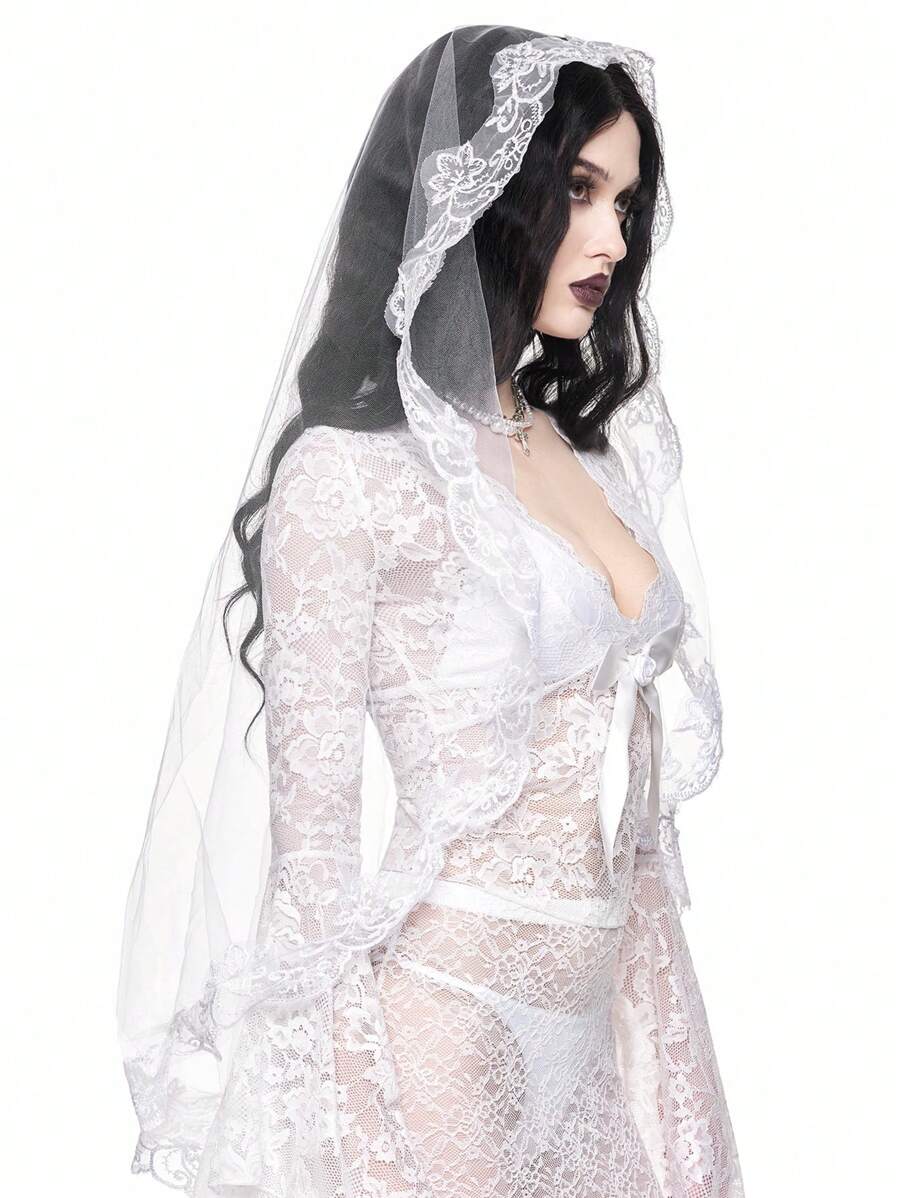 Goth 1pc Rosebride Brand Vintage French Lace White Bridal Veil