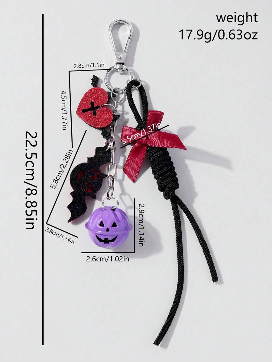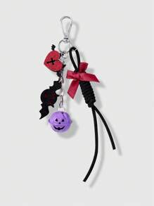Goth 1pc Silver Chain Devil Wings, Red Heart, Cross, Ribbon Bow, Purple Bell, Black Braided Adjustable Lanyard Bag Charm Keychain, Suitable For Daily Wear, Holiday Gift