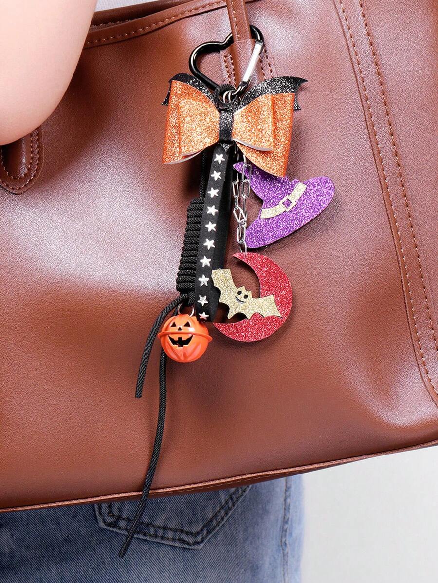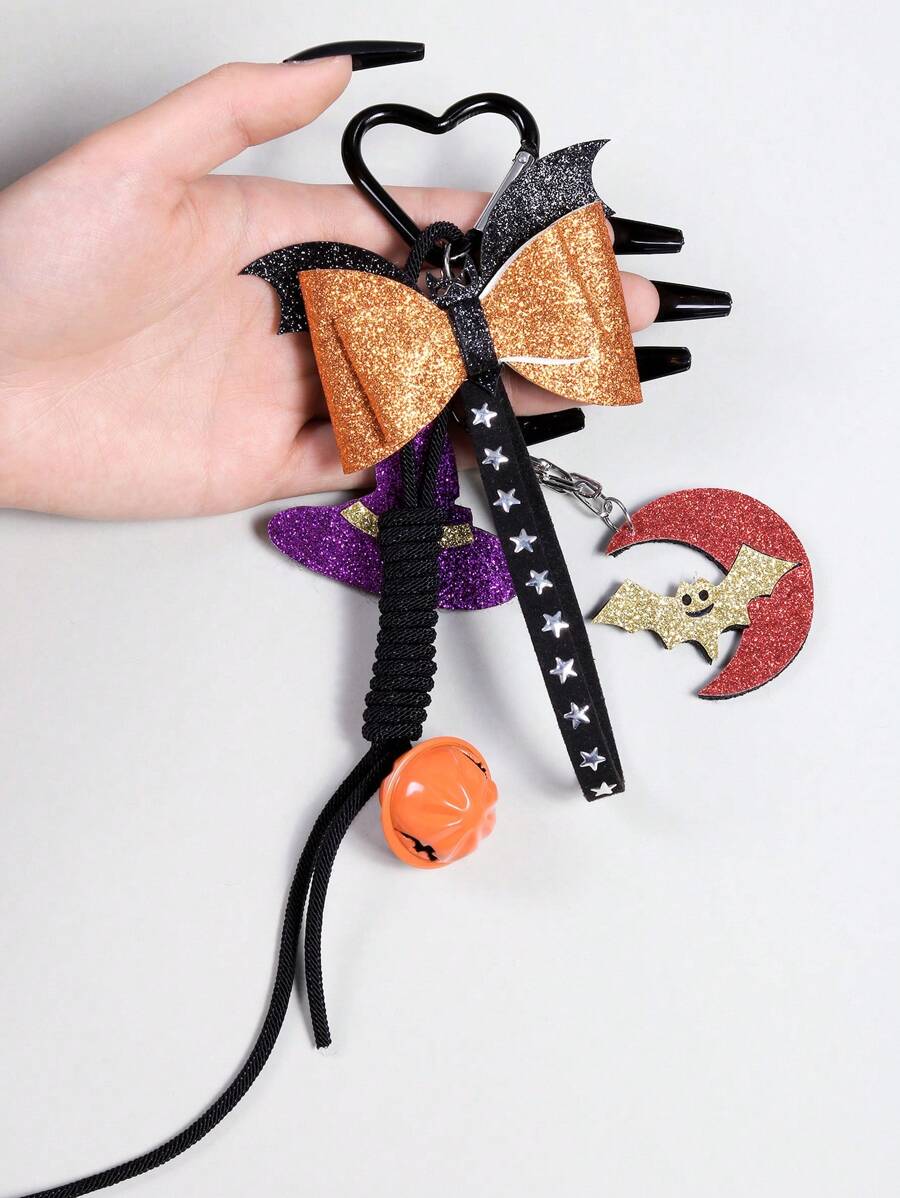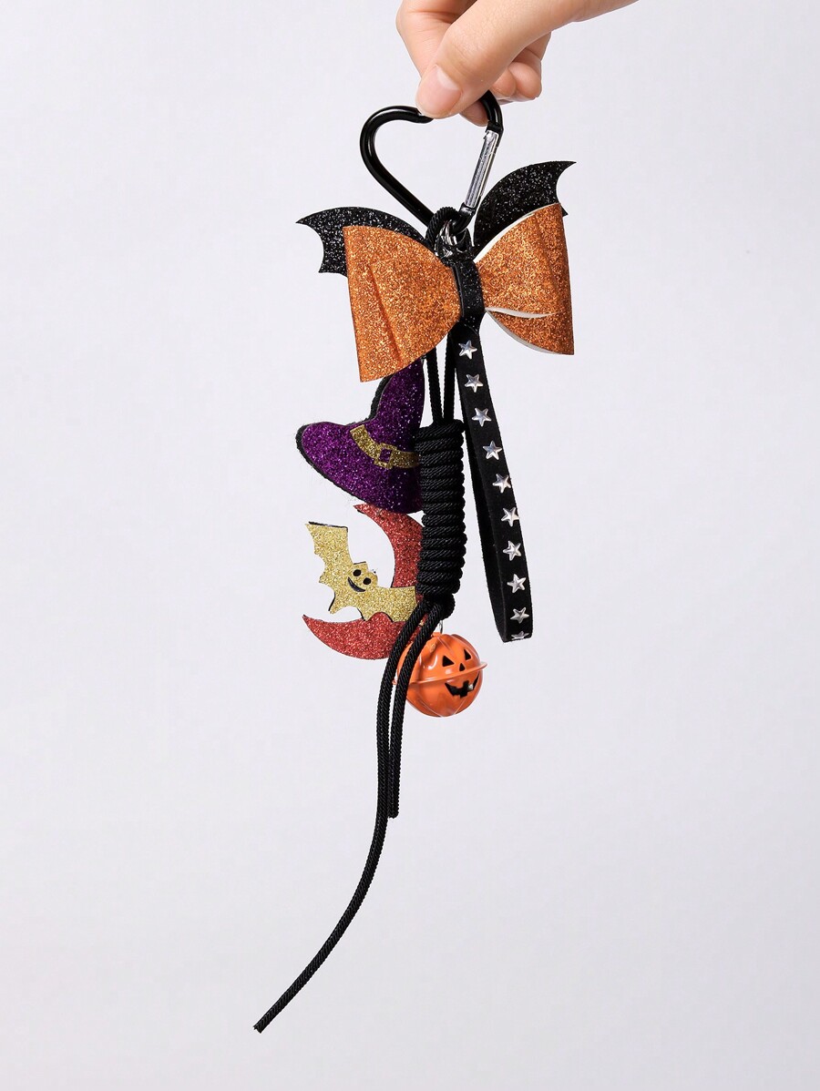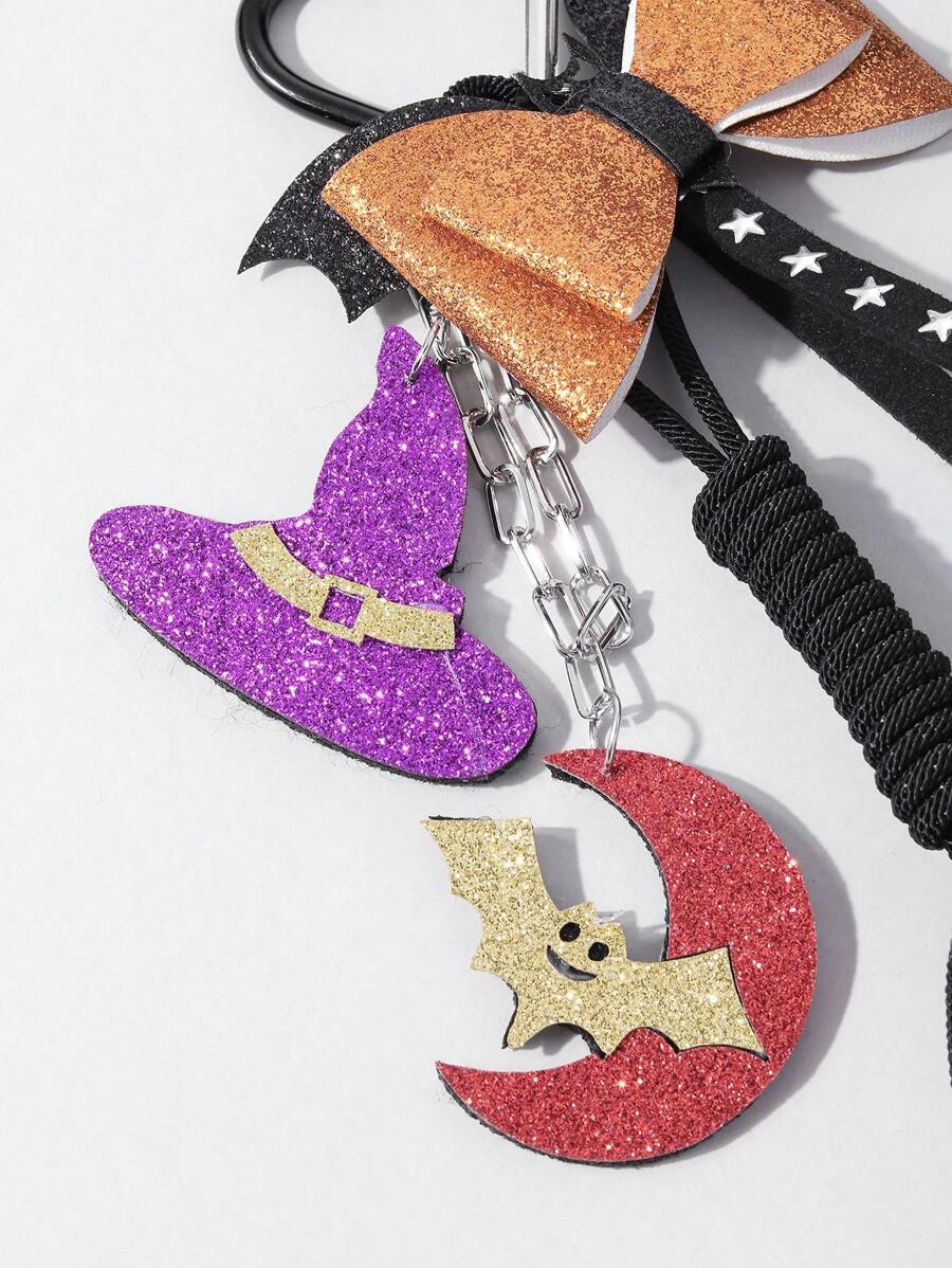 Goth 1pc Stylish Silver Tone Chain Necklace With Moon, Bat, Pumpkin, Bell, Black Bat Wing, Bow Tie, Adjustable Star Pendants, Heart & Key Charms, Suitable For Daily Wear & Holiday Gift Valentines, Halloween