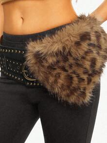 Goth 1pc Women's Brown Leopard Print Fluffy Decorative Western Style Belt & Dress Accessory, Versatile For Daily Wear