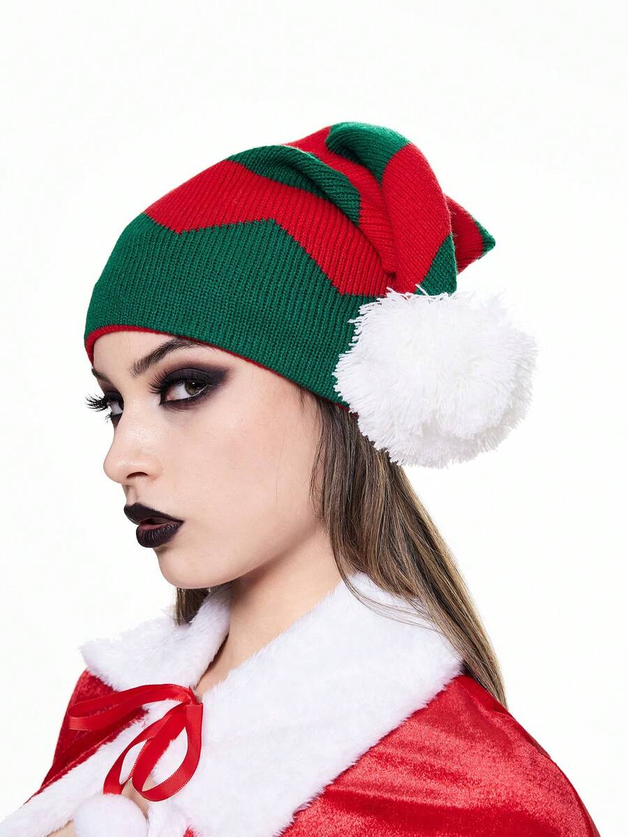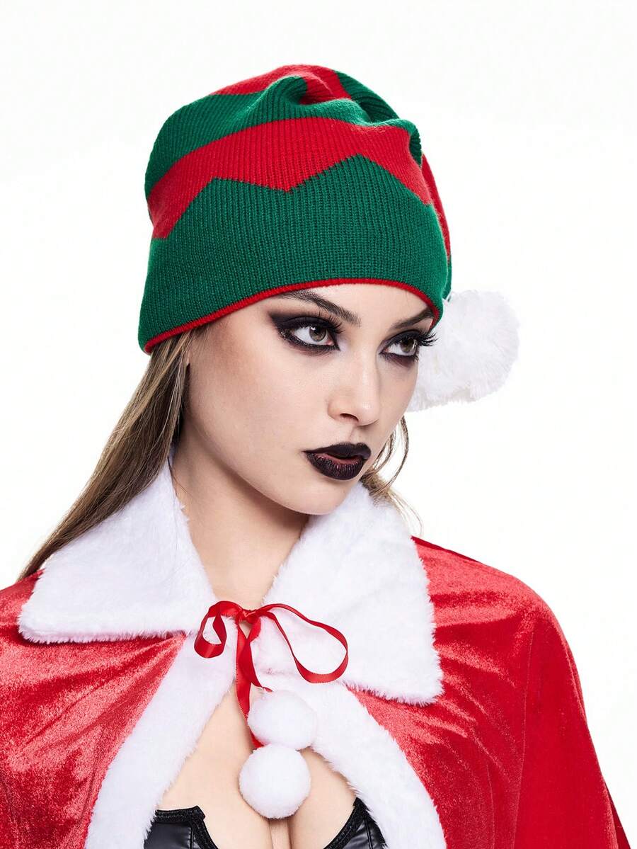 Goth 1pc Women's Colorful Striped Knitted Christmas Beanie Hat, For Holiday , Winter