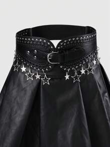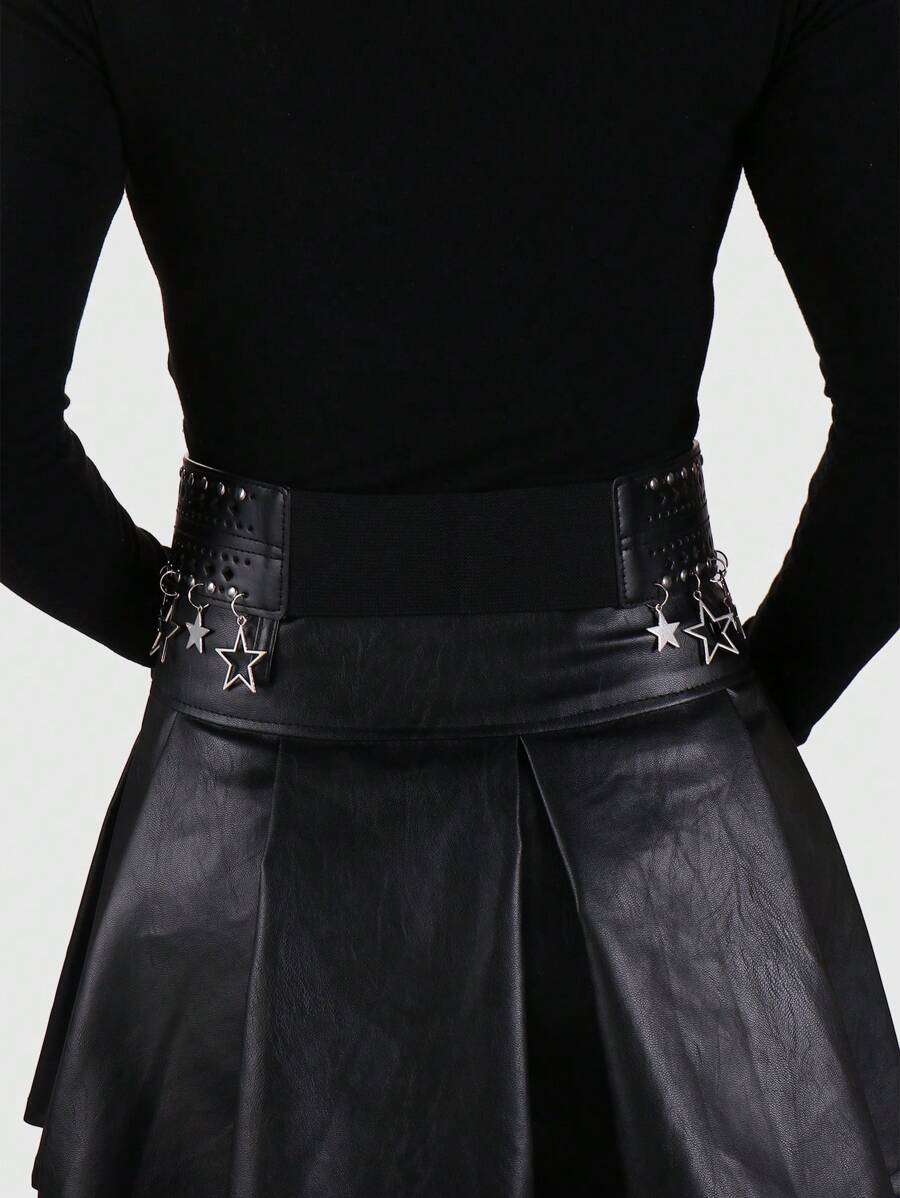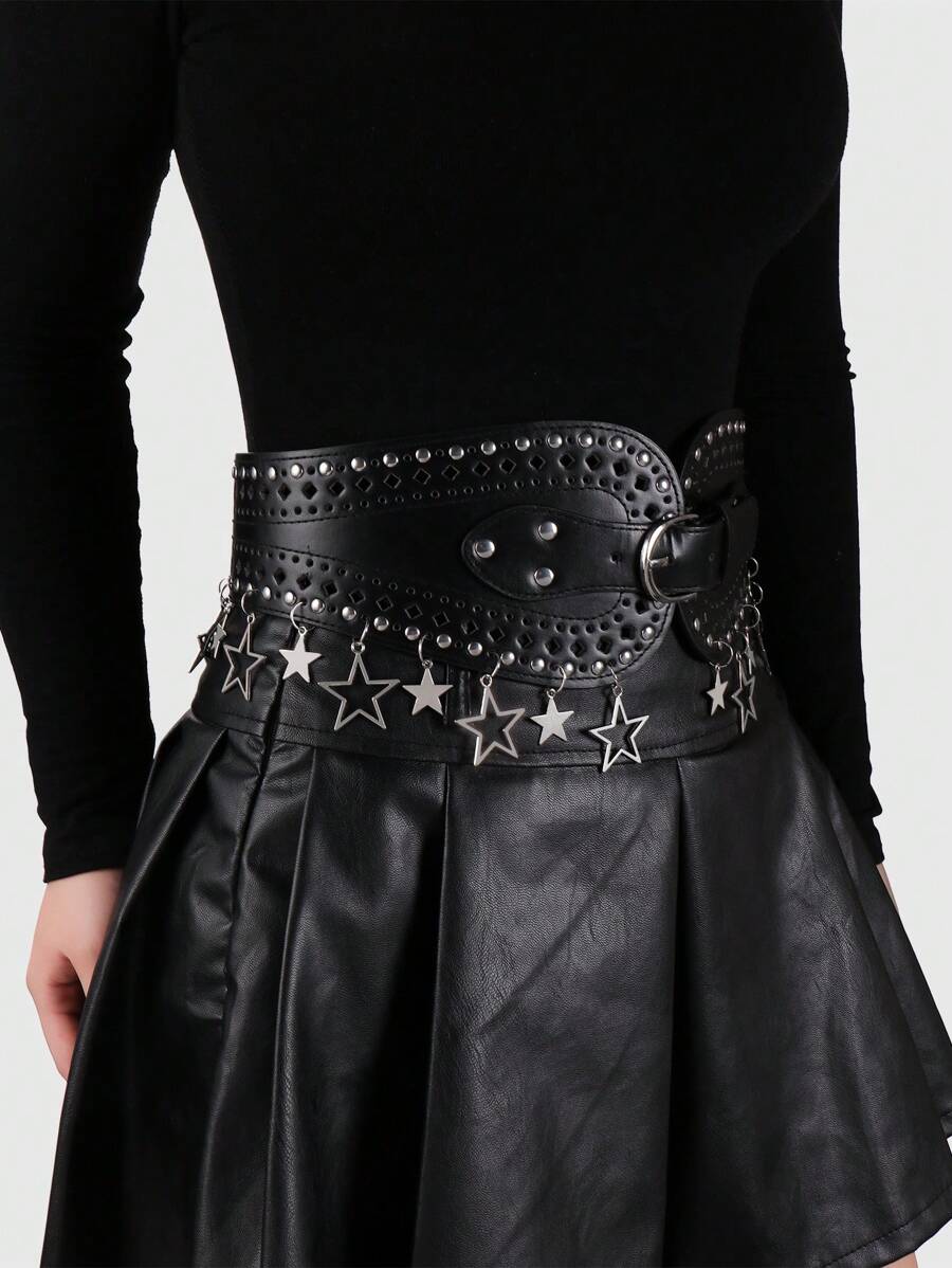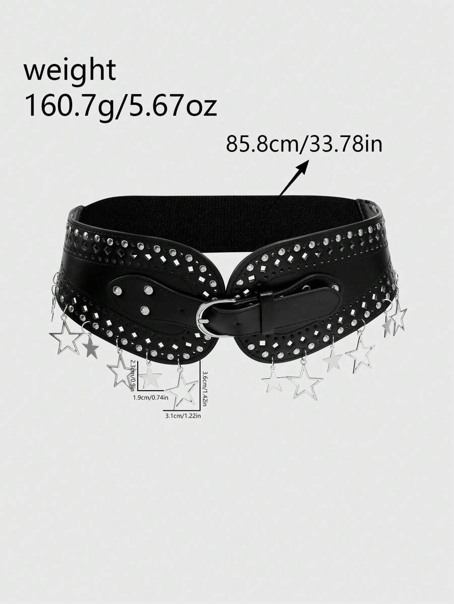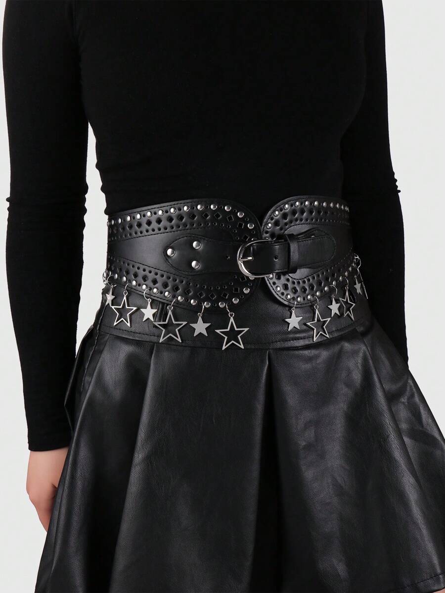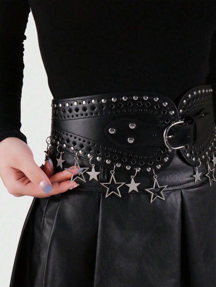1pc Y2K Punk Retro Gothic Star Cut-Out Rivet Decor Black Waist Belt&Pants Buckle Set, Fashionable & Stylish, Women Daily Wear, Gifts
