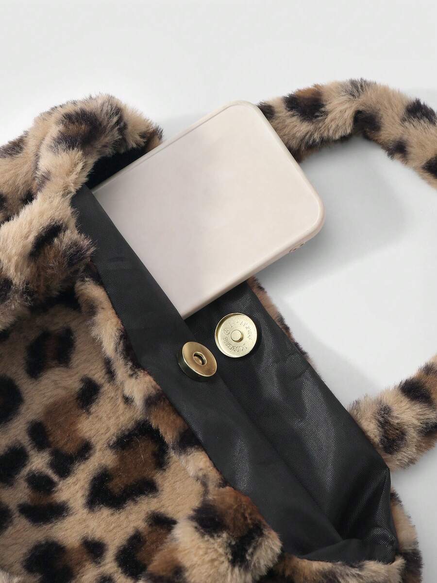Goth 1pc Y2K Retro Fashionable Personalized Sweet Cool Girl Lazy Chic Series Autumn/Winter Large Capacity Brown Faux Fur Leopard Tiger Animal Print Magnetic Snap DIY Handbag Shoulder Tote Bag, Suitable For Women Daily Commute, Holiday Gift