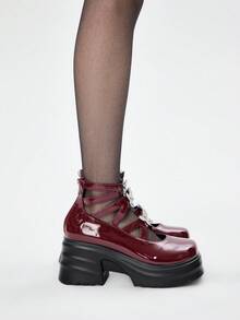Goth 2024 New Fashion Mary Jane Street Style Women's Shoes, Thick Heel, Platform, Round Toe, Versatile, Minimalist, Commuting, Spring