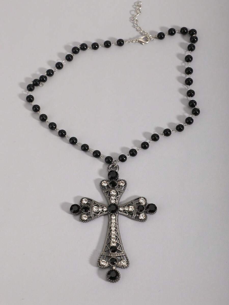 Goth 2pcs Bohemian Style Simple Faux Pearl Hollow Out Five-Pointed Star Charm Collarbone Necklace Set Fashionable Star & Round Beaded Necklaces For Women
