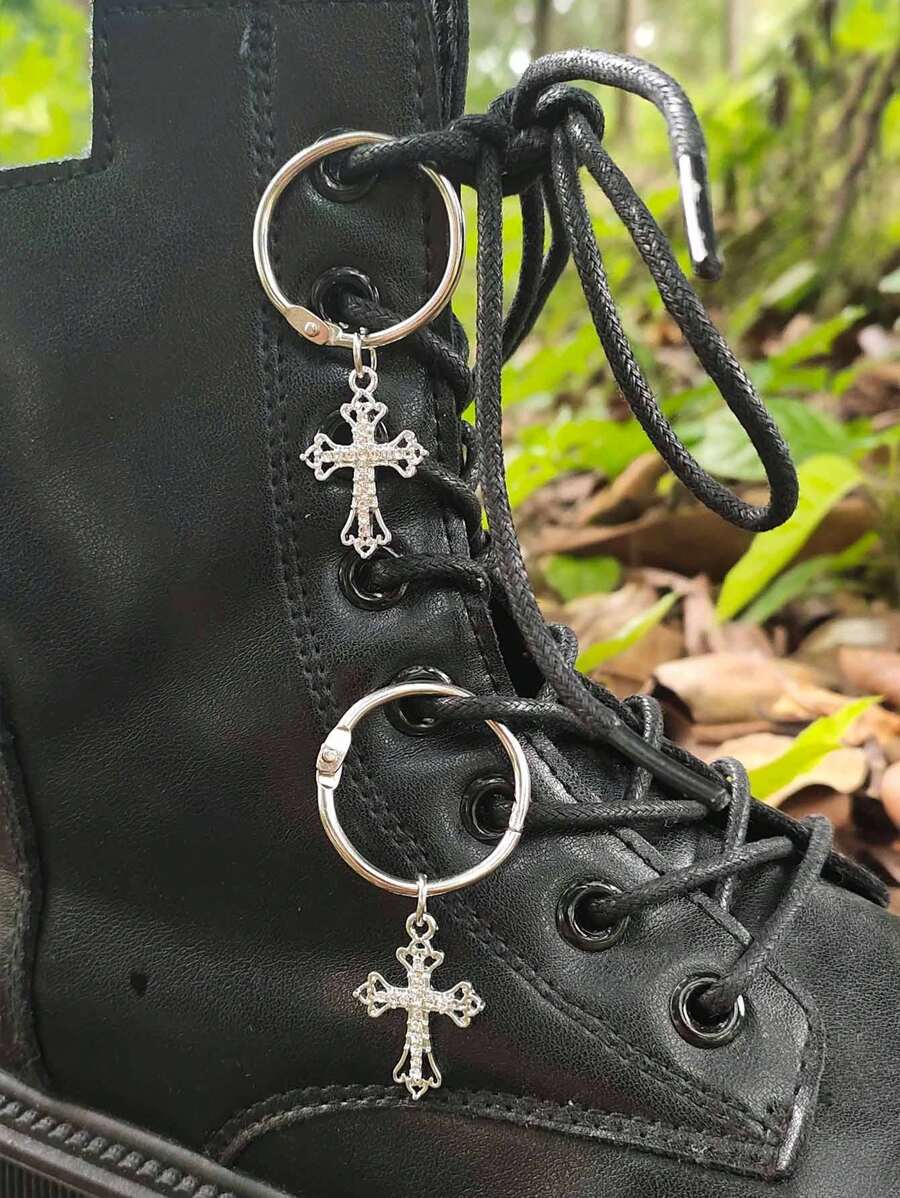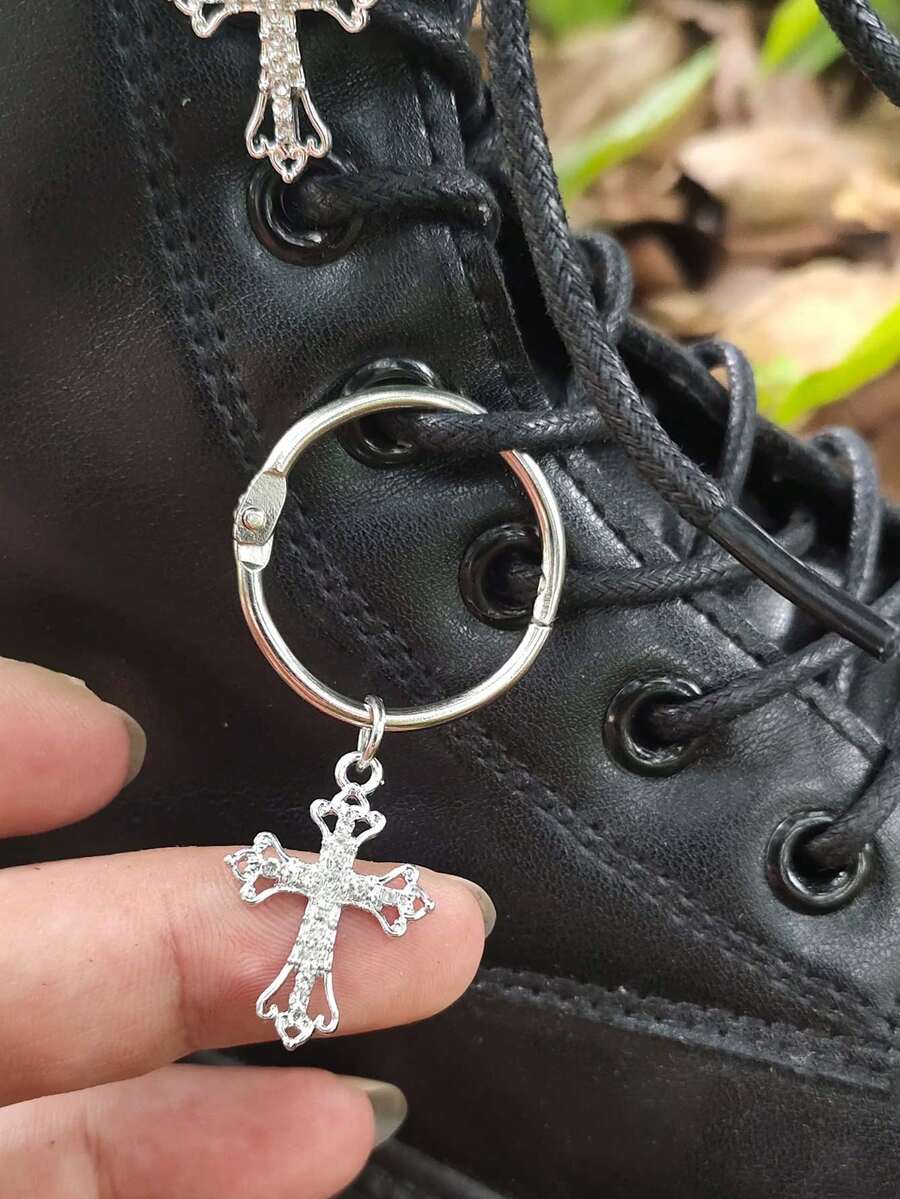 Goth 2pcs Cross Design Shoe Decoration
