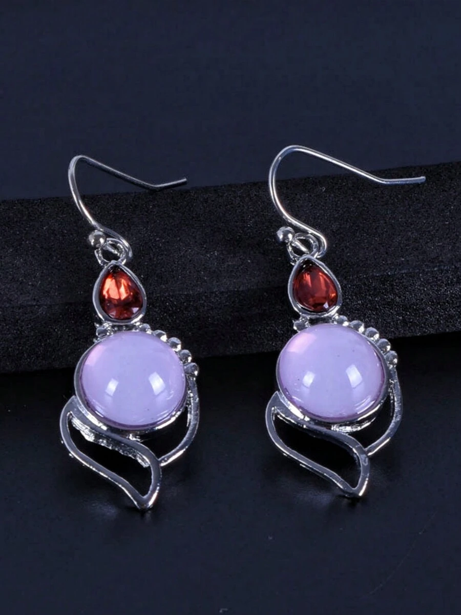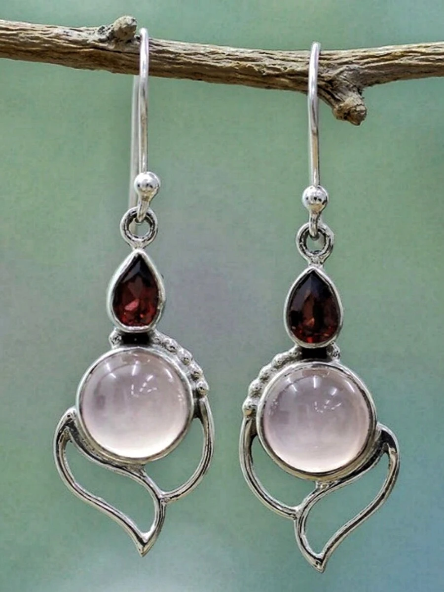 Goth Exquisite Moonstone & Red Decorated Dangle Earrings