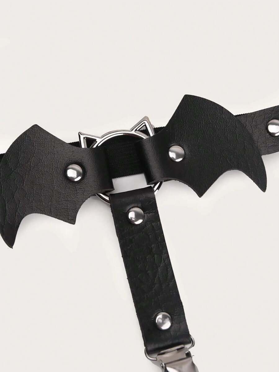 Goth 2pcs Women Solid Bat Wings Decor Garter Belt