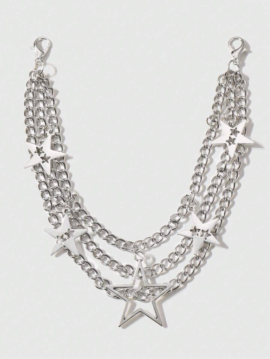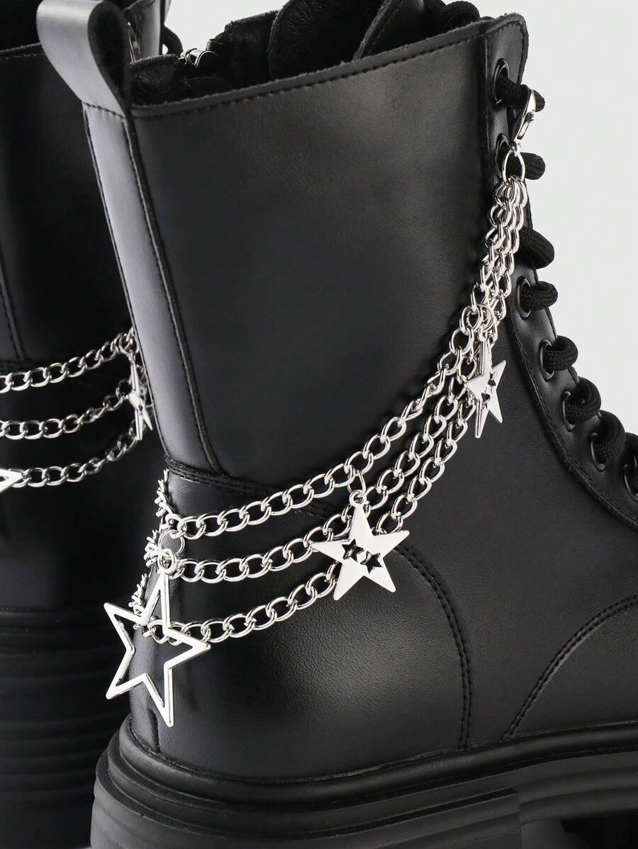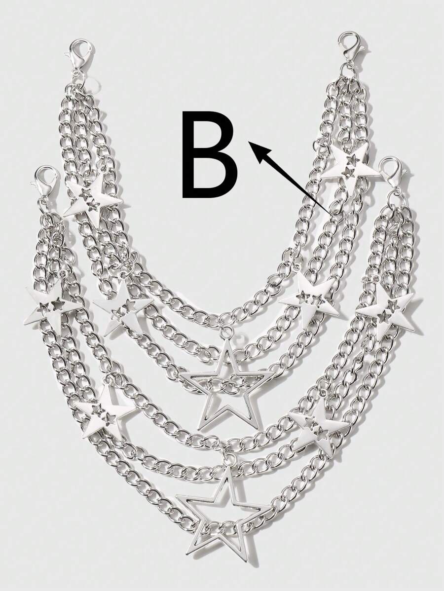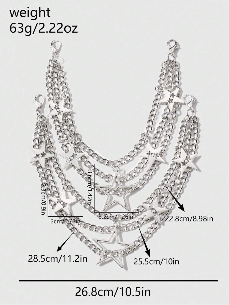 2pcs Y2K Punk Goth Style Silver Hollow Chain, Faux Pearl Bowknot & Hollow Star Pendant Shoe Clips Decorative Set, Suitable For Women Daily Wear, Gift For Women,Girl