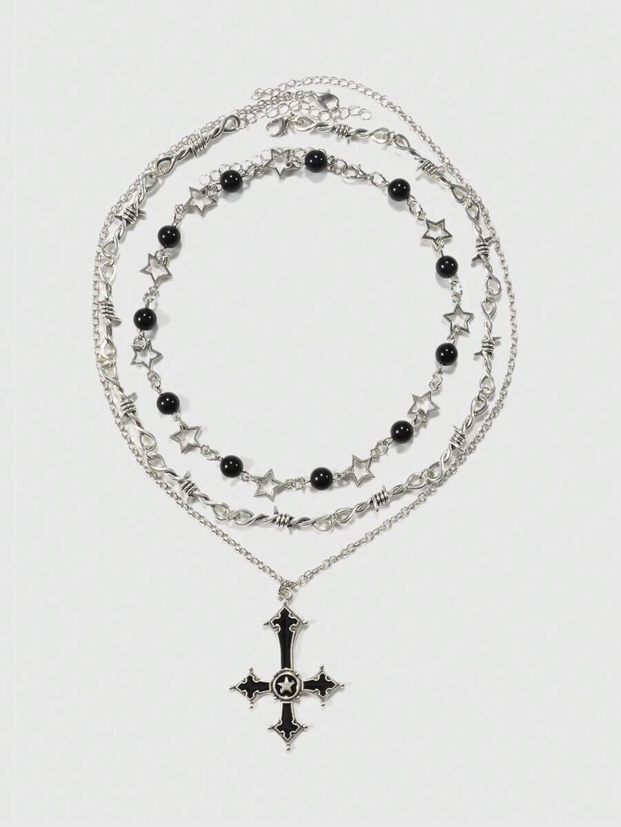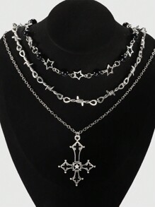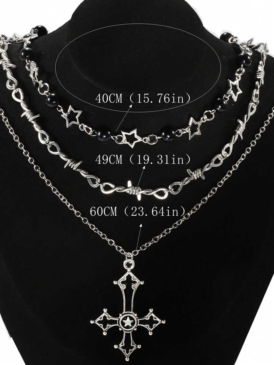 Goth 3pcs Fashion Iron Alloy Cross & Star Decor Necklace For Women For Daily Decoration