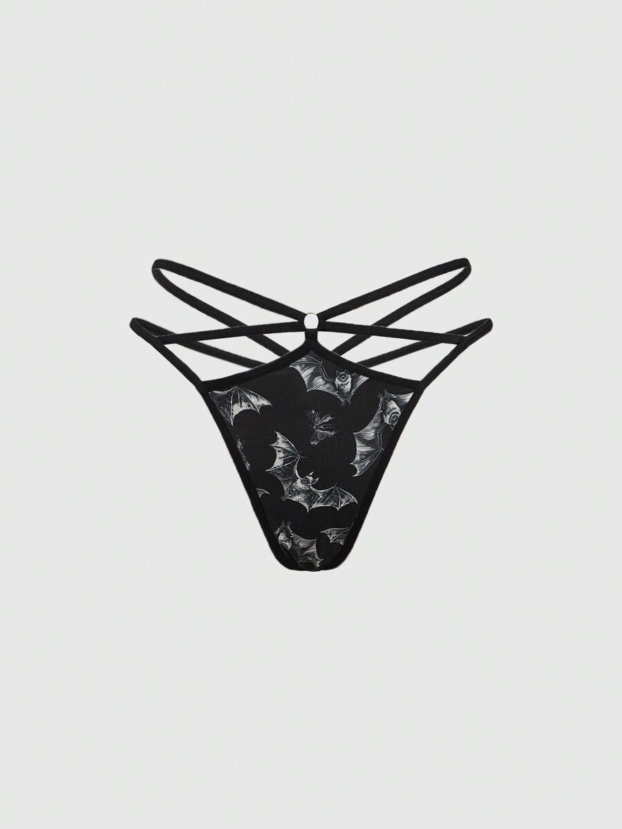 Goth 3pcs/Set Bat, Spider And Crow Print Reversible Waistband G-String Panties