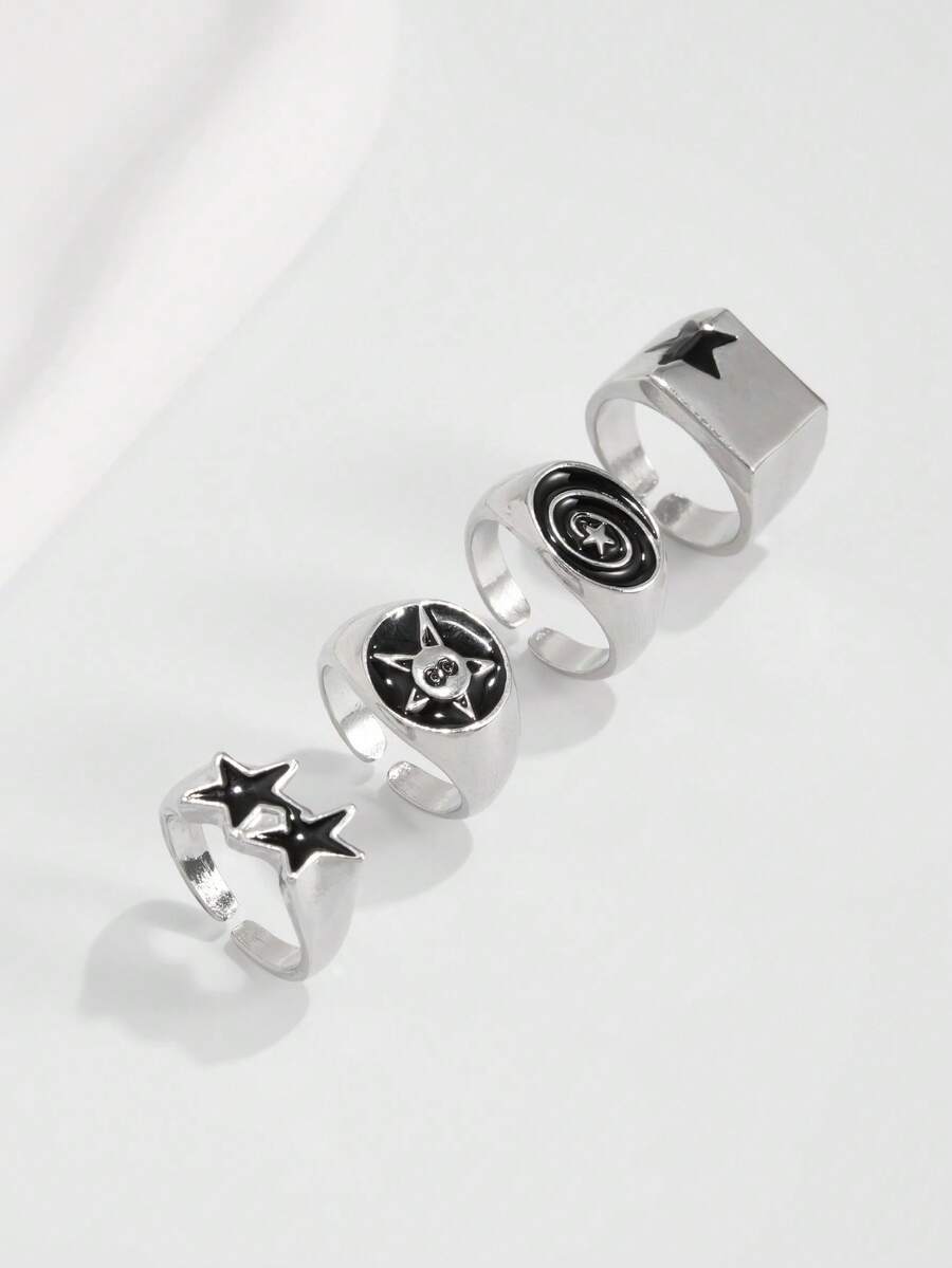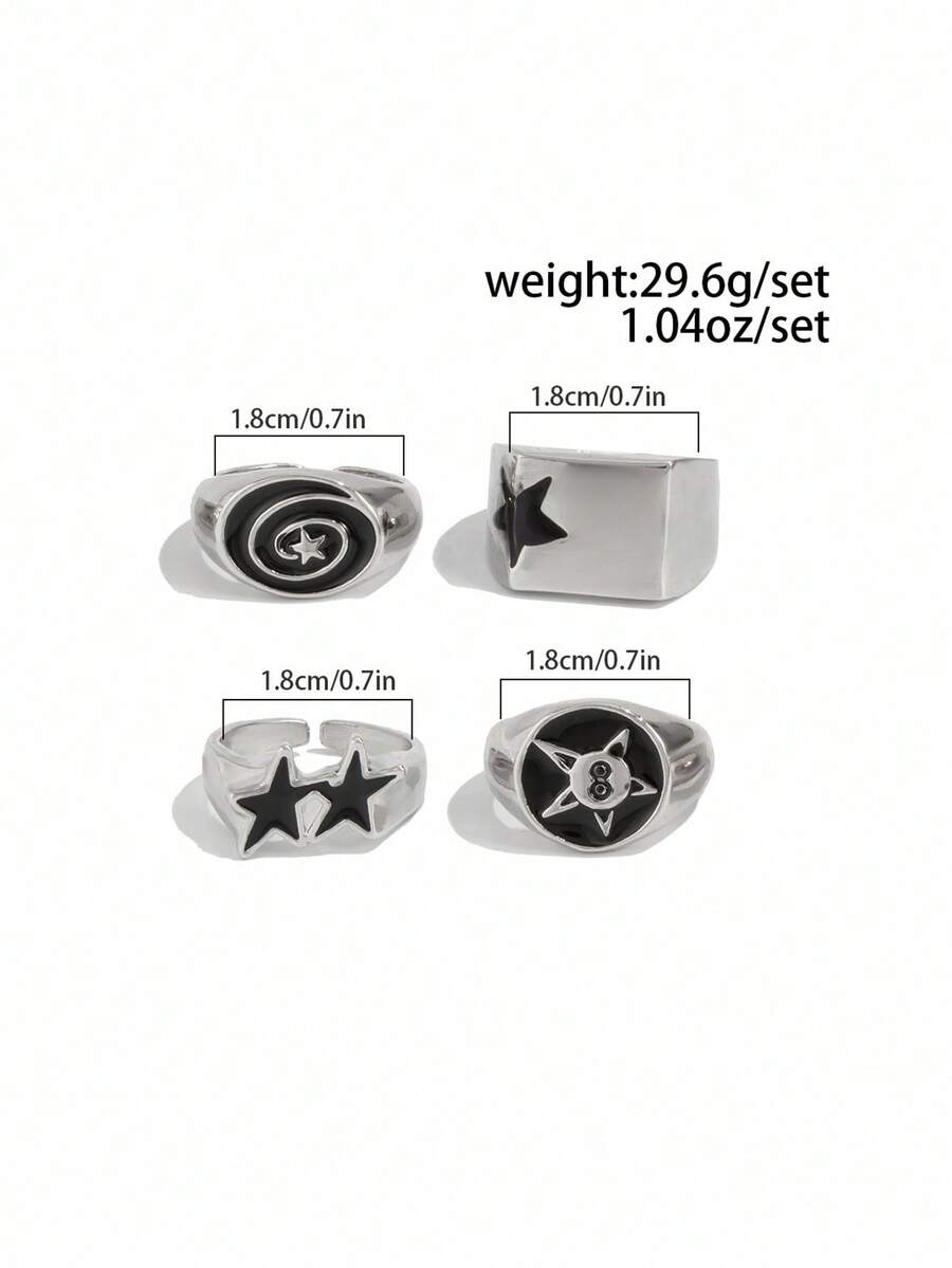 Goth 4pcs/Set Punk Style Spiral Star Rings, Adjustable Ring Set For Couples