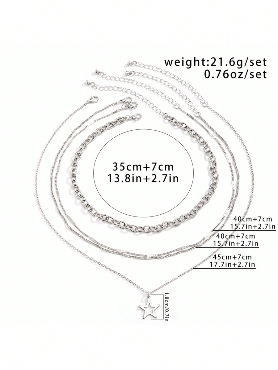 Goth 4pcs/set Fashionable Punk Style Star Pendant Necklace