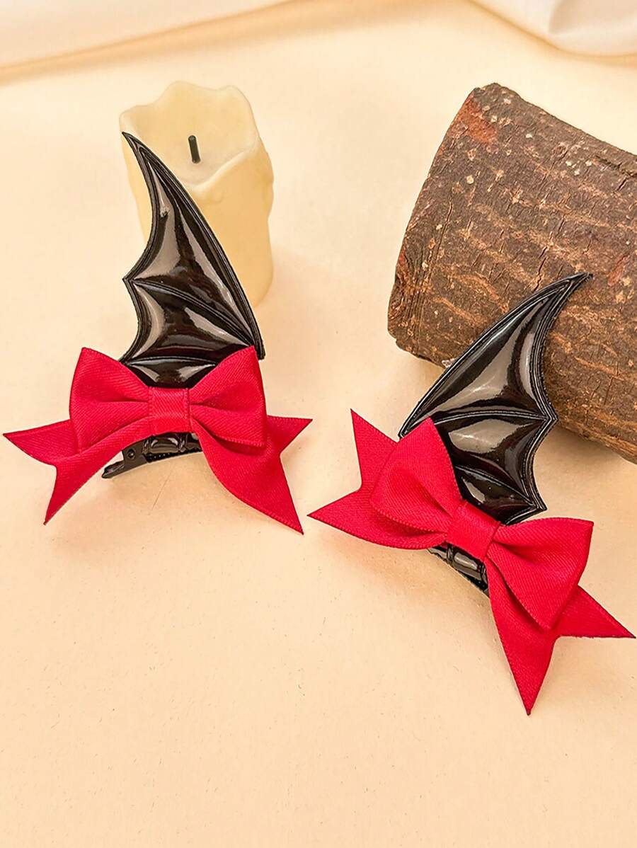 Black Devil Bat Wing Hair Clip, Red Butterfly Hair Accessory, Lolita Goth Style Hair Ornament