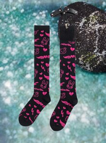 Goth Cartoon Graphic Crew Socks With Garter Belt