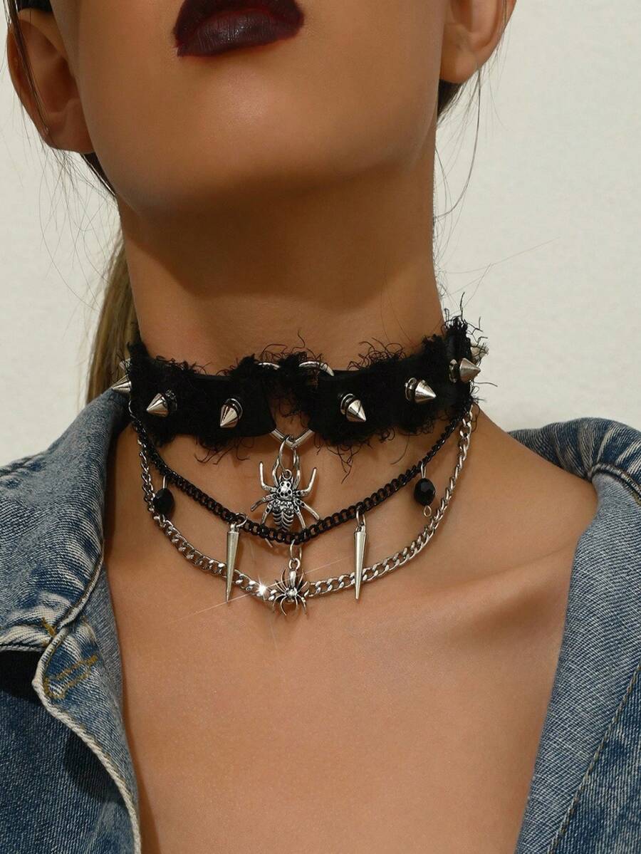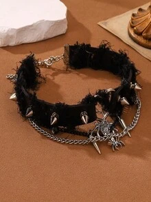Goth Choker Necklace, Exaggerated Design, Tassel PU Necklace, Sweet & Spicy Accessories