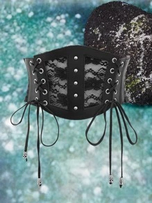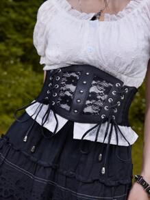 Goth Contrast Floral Lace Corset Belt