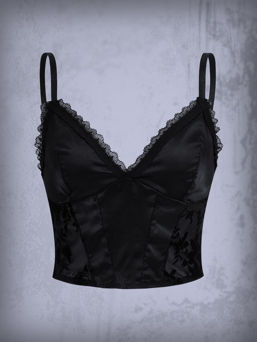 Goth Contrast Lace Satin Cami Top