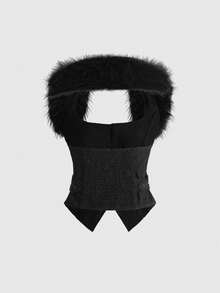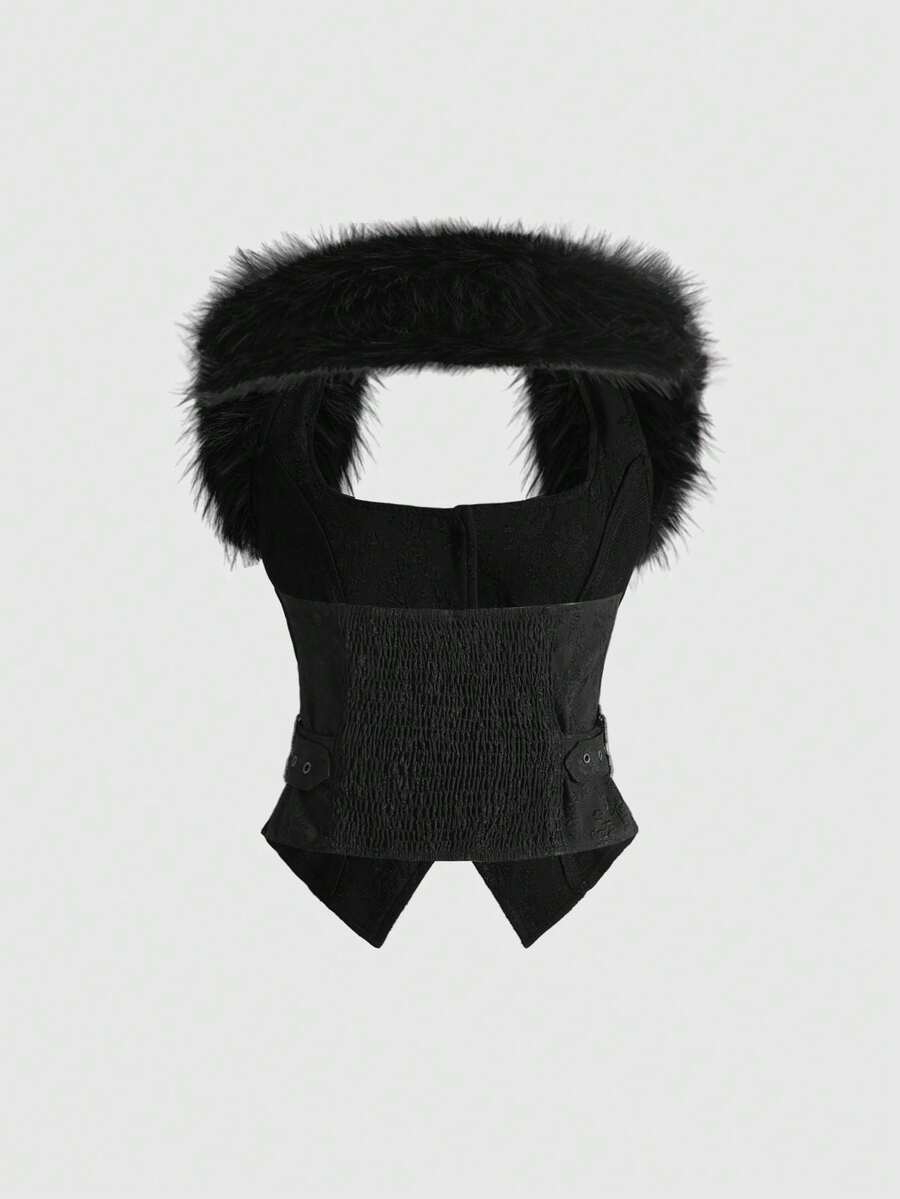 Goth Dark Palace Gothic Vintage Jacquard Textured Fabric Patchwork Fur Collar Jacket