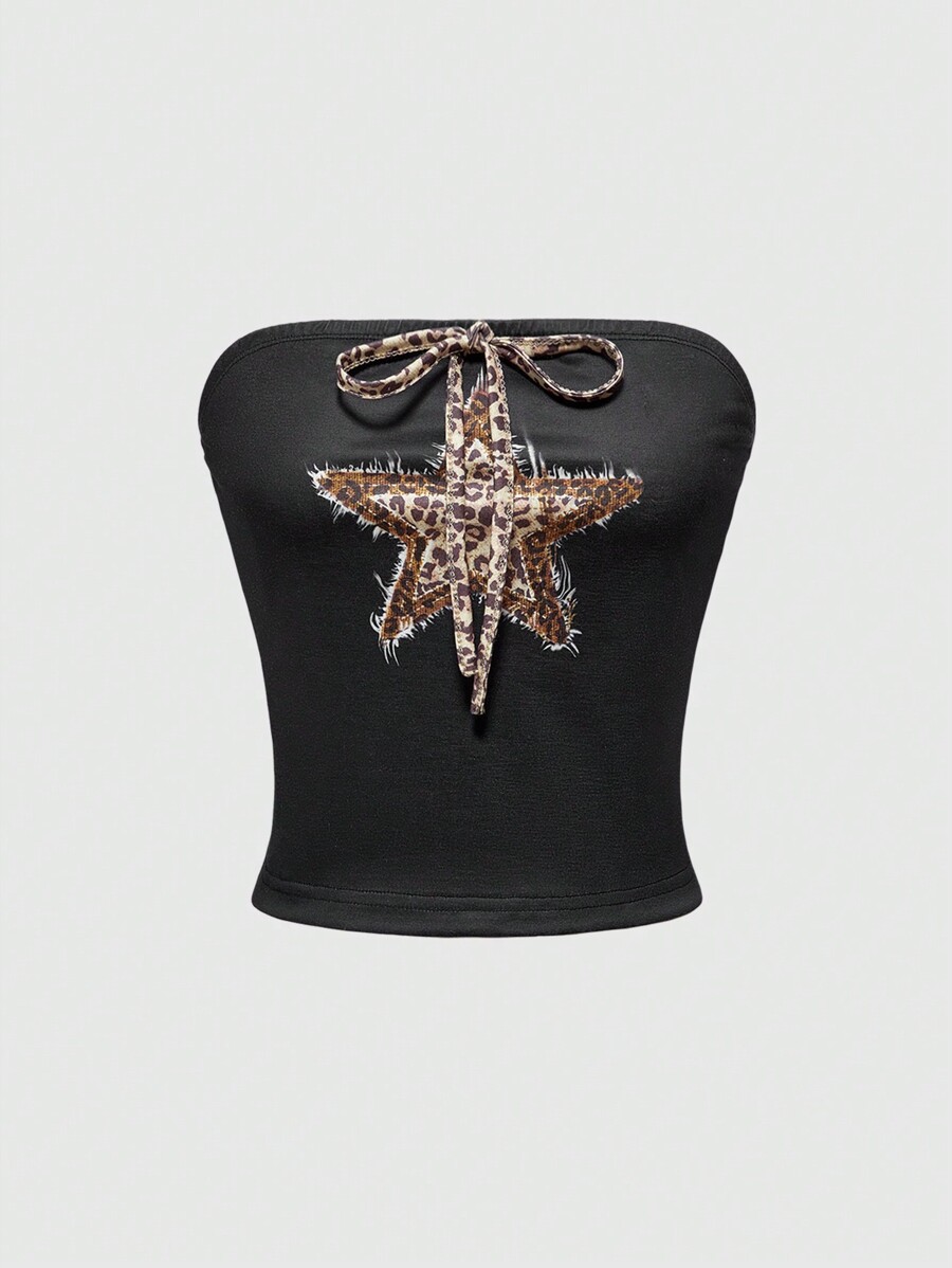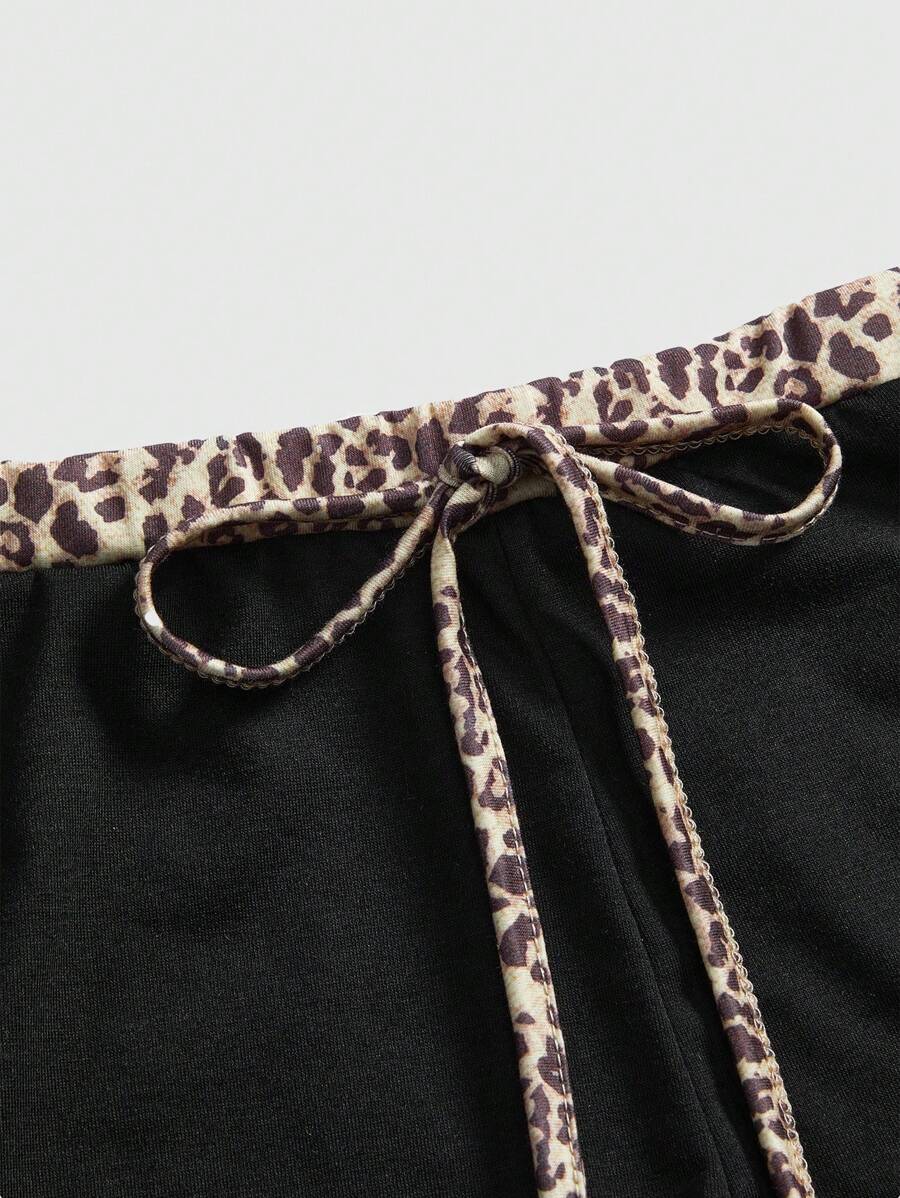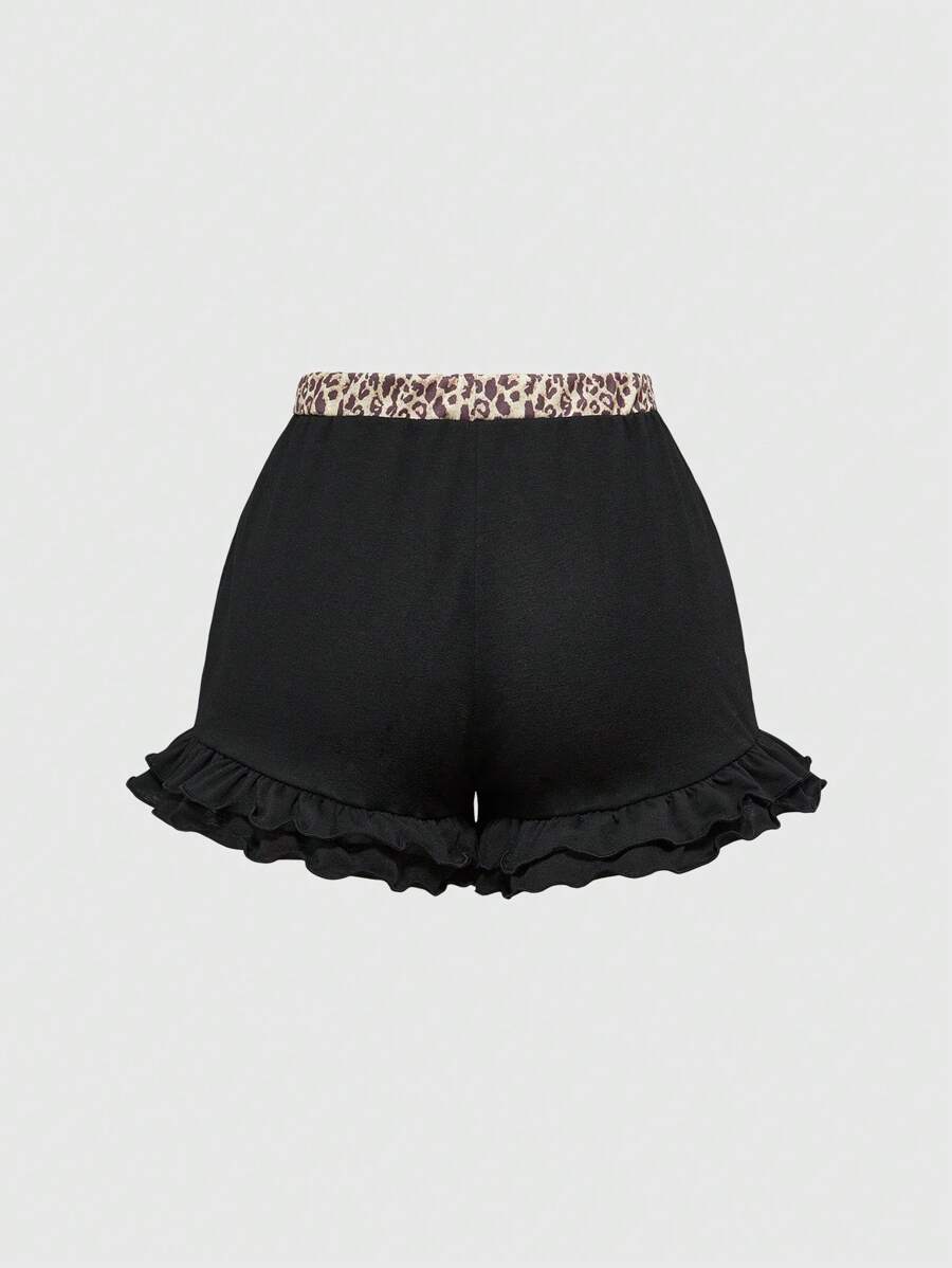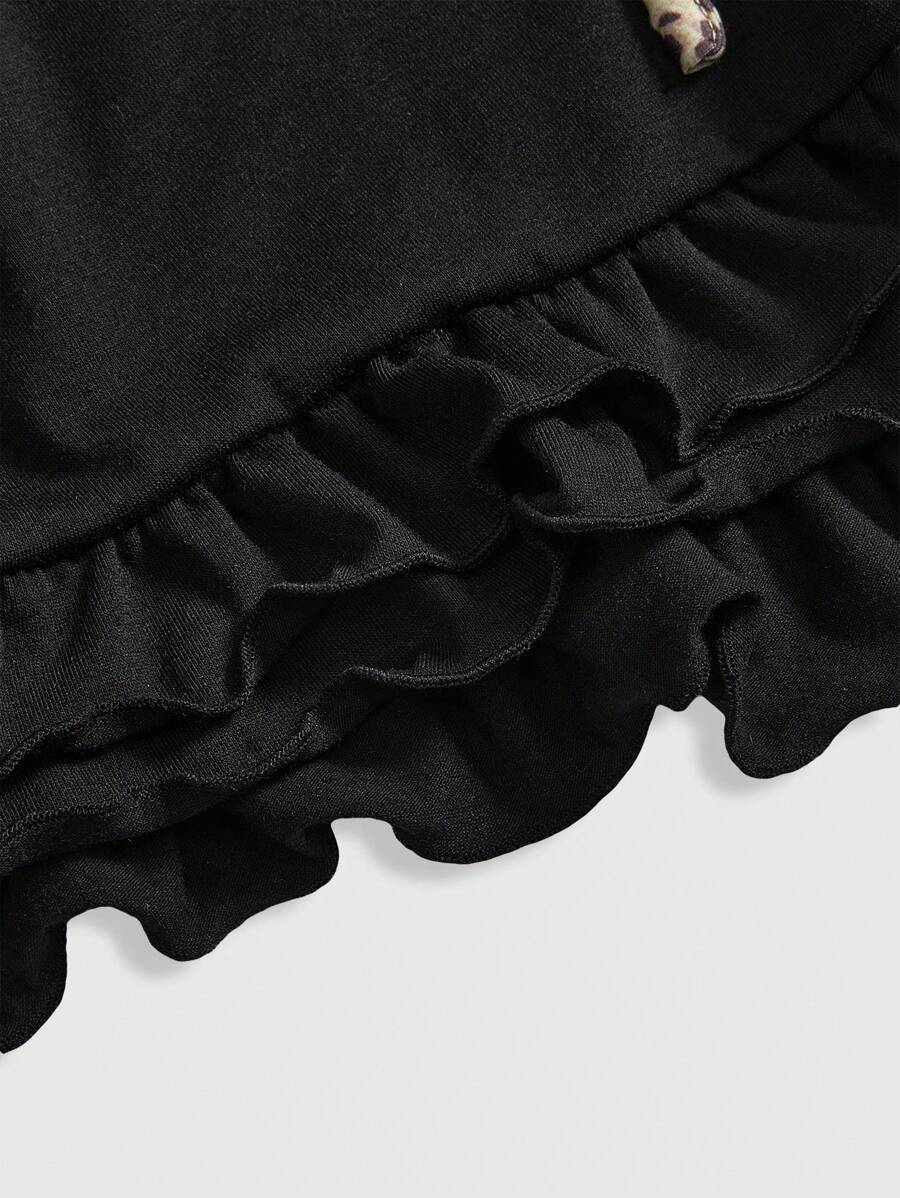 Goth Dark Punk Leopard & Star Print Layered Ruffle Hem Camisole And Shorts Pajama Set