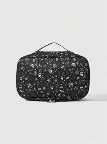 Goth Dark Skeleton Flame Pattern Large Capacity Portable Cosmetic Bag For Women, Item No. 1005965, Black Bag