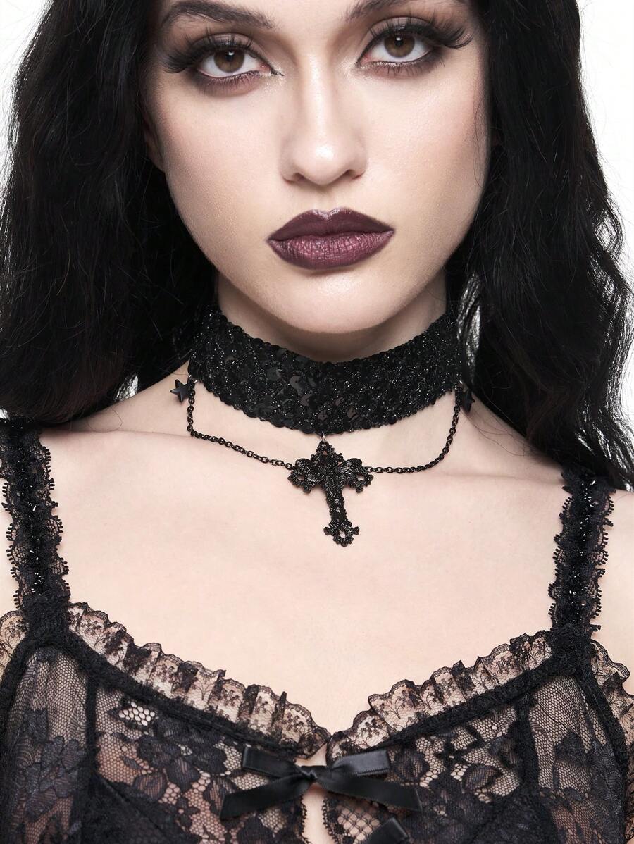 Fashionable Edgy Dark Gothic Cross Pendant Choker Necklace