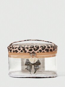 Goth Fashionable Leopard Print Bow Large Capacity Transparent Cosmetic Bag For Women, 401422