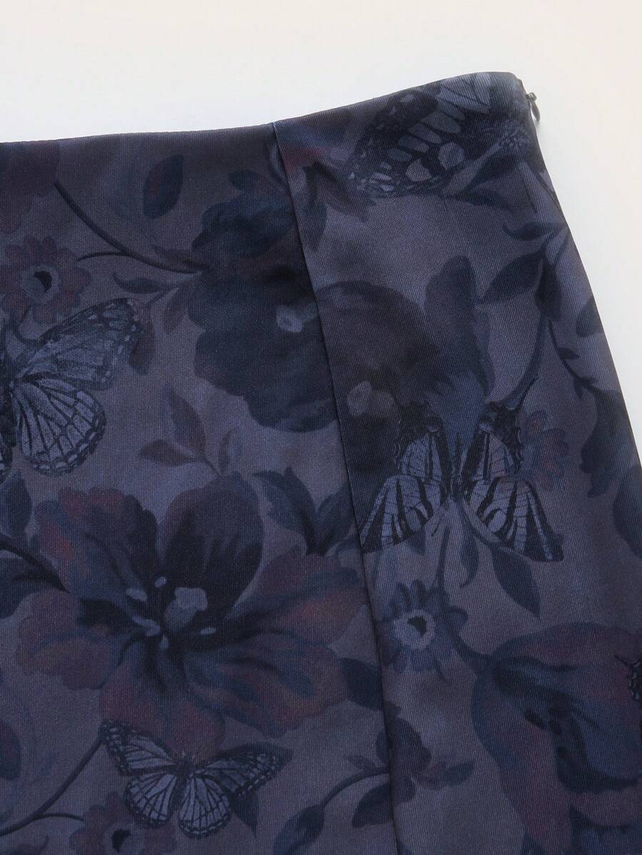 Goth Floral Print Contrast Lace Skirt, School