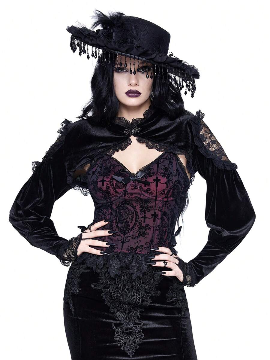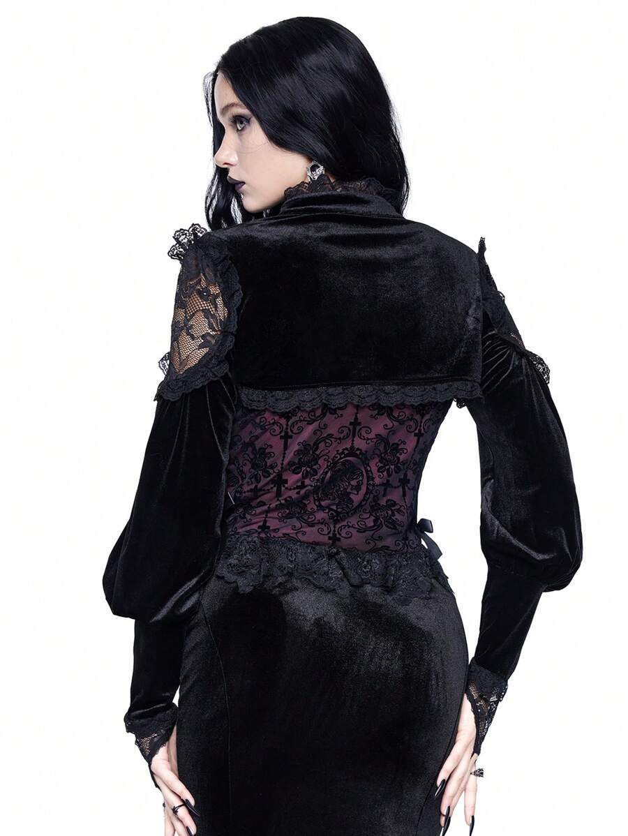 Goth Luxury Velvet & Lace Patchwork Camisole Top