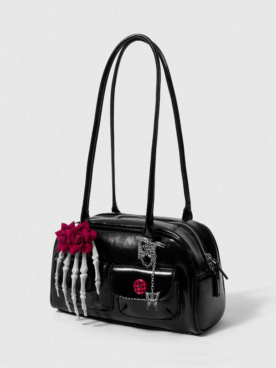 Gothic Chic Armpit Pouch, Vintage Punk Women Shoulder Bag, Black Bag