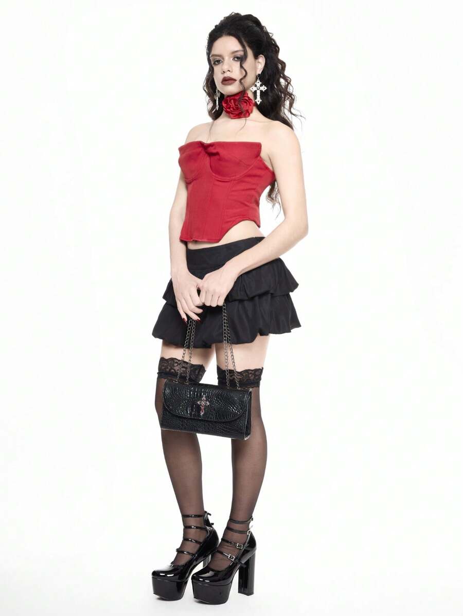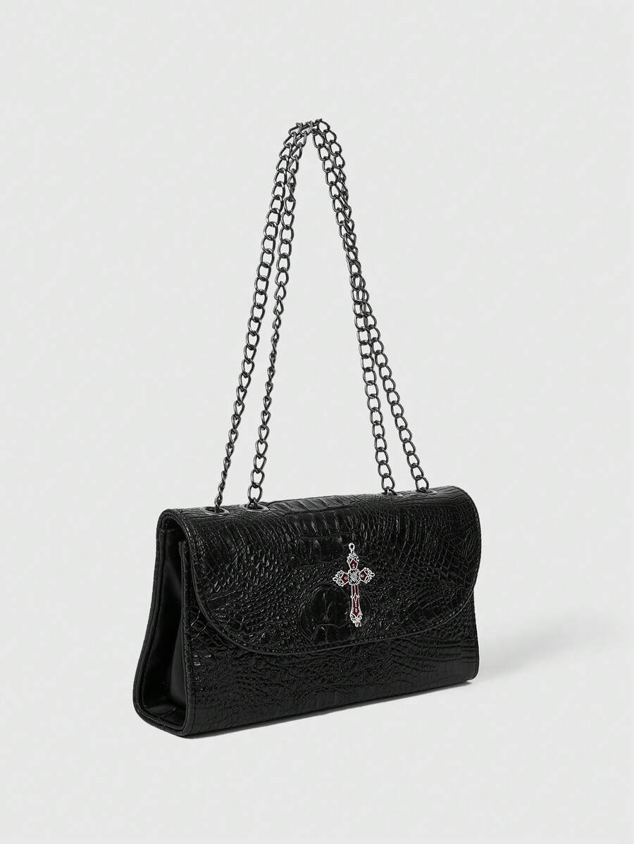 Gothic Punk Faux Crocodile Texture Cross Design Ladies Shoulder Bag