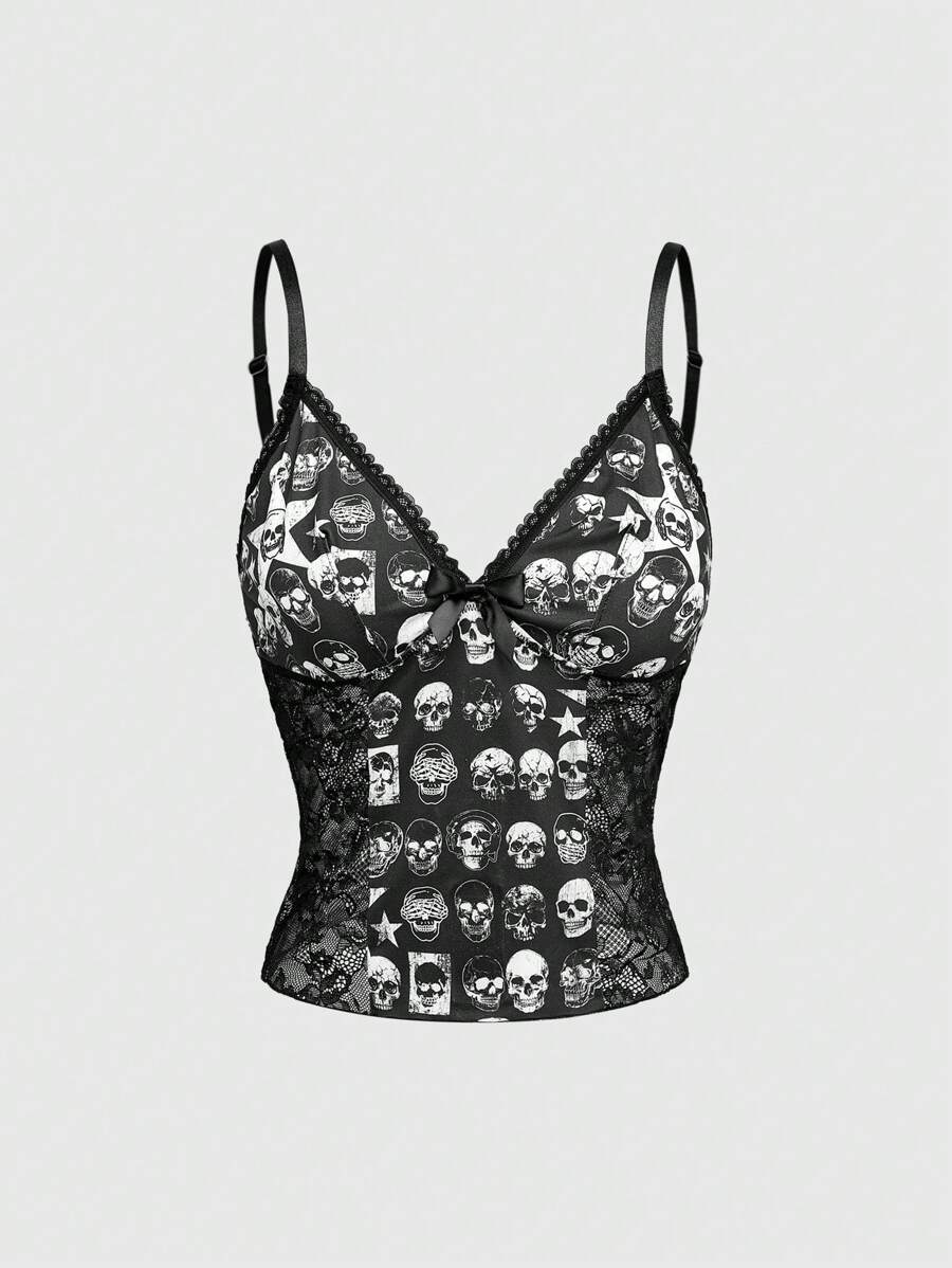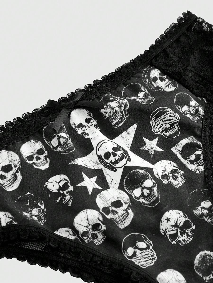 Gothic Punk Skull & Star Strap Top And Lace Triangle Underwear Set
