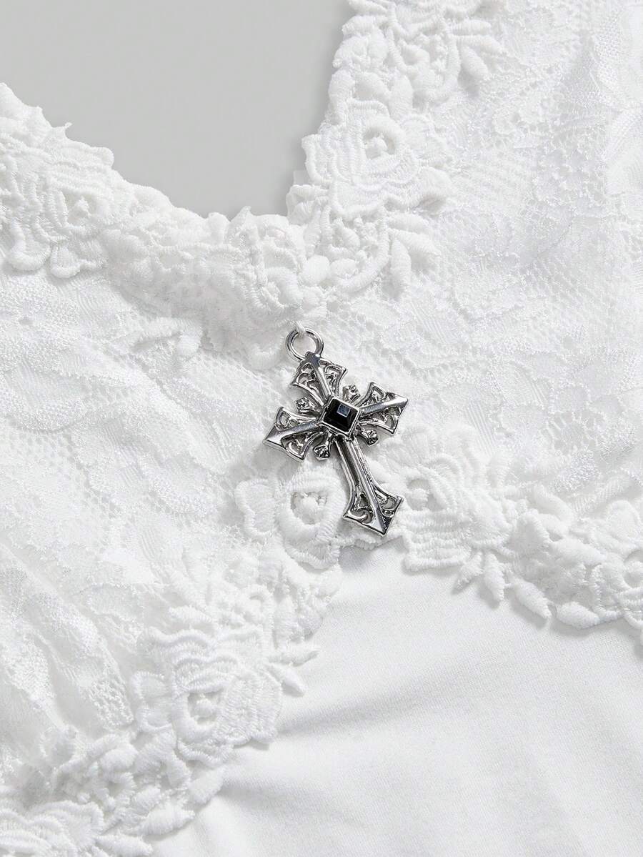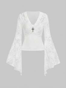 Gothic Sexy Lace V-Neck Patchwork Flare Sleeve Blouse For Date/Valentine's Day