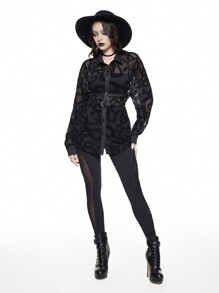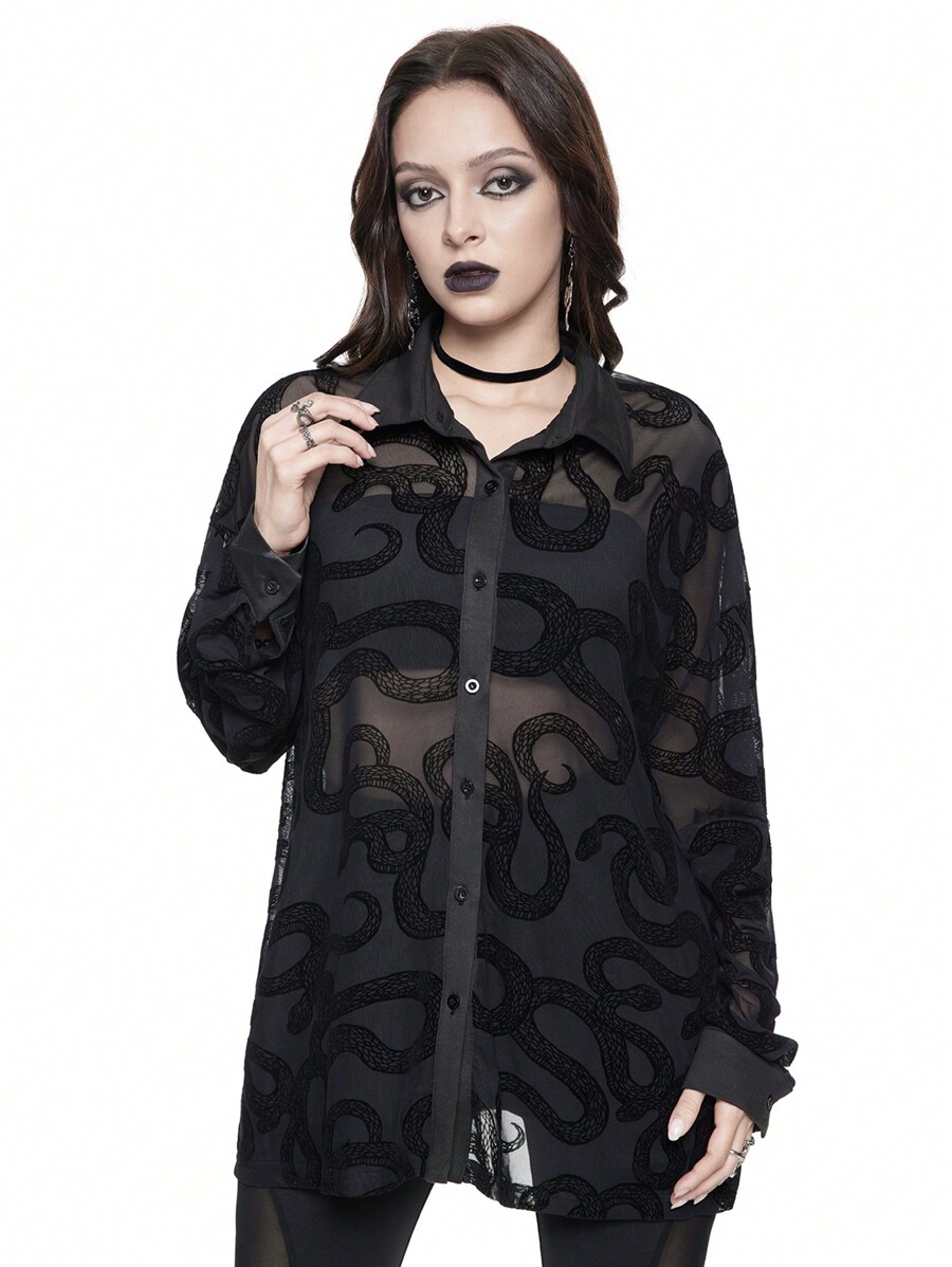 Gothic Snake Flocked Batwing Sleeve Oversized Sheer Blouse For Women