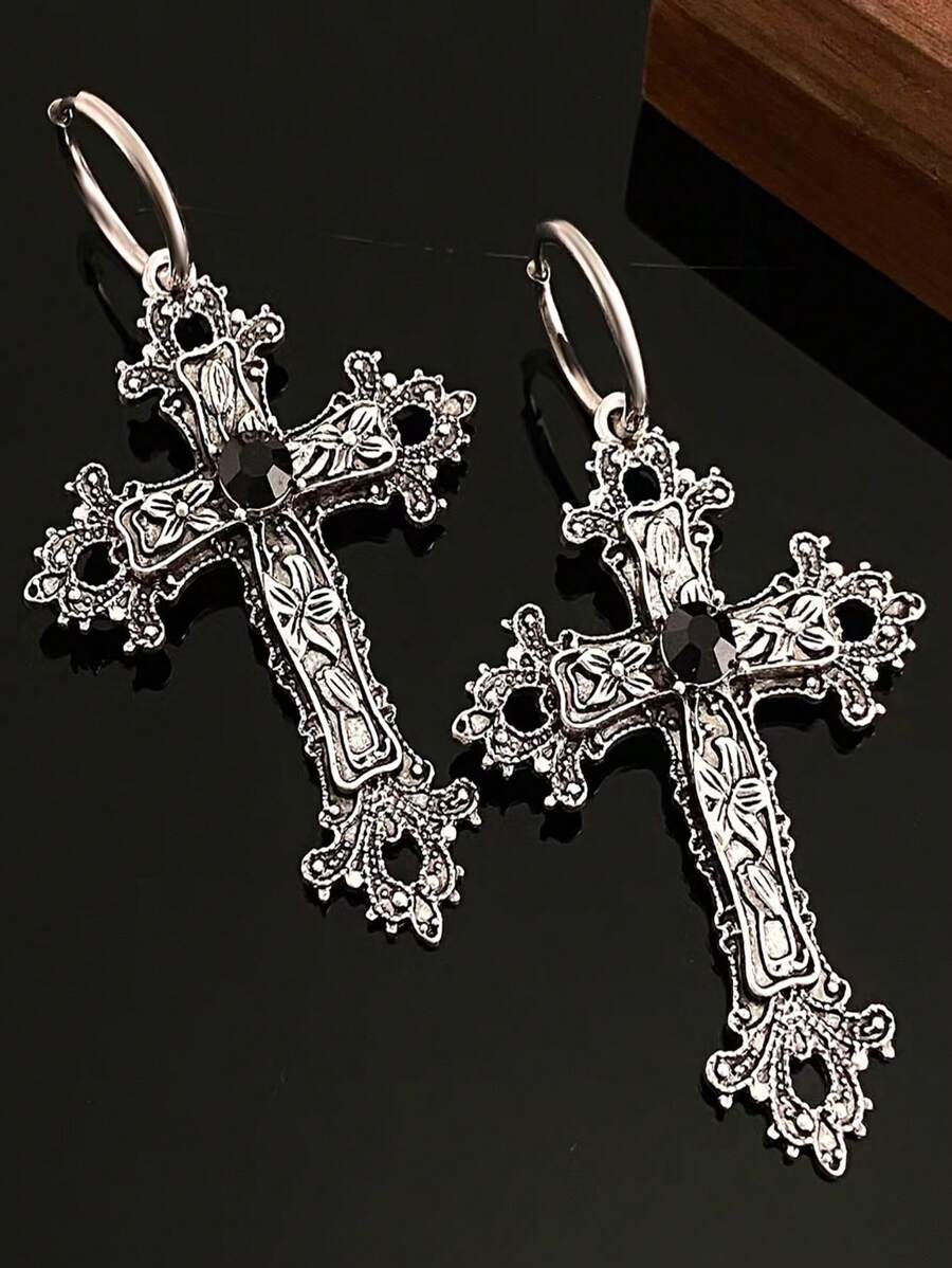 Gothic Vintage Style Flower Vine Cross Dangle Earrings Valentines