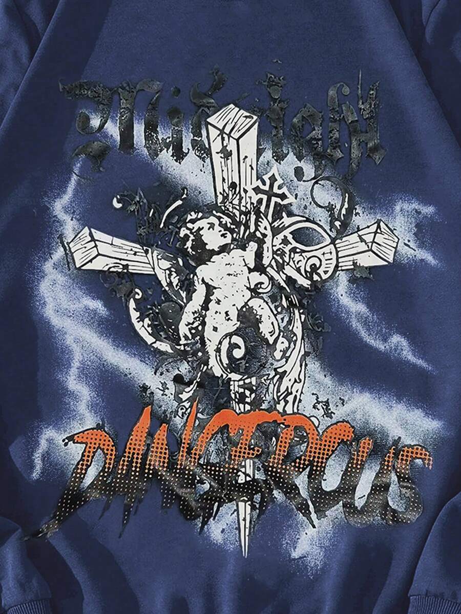 Goth Guys Letter & Figure Graphic Sweatshirt