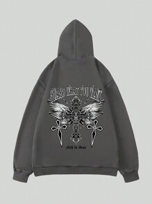Goth Guys Slogan & Cross Graphic Zip Up Hoodie