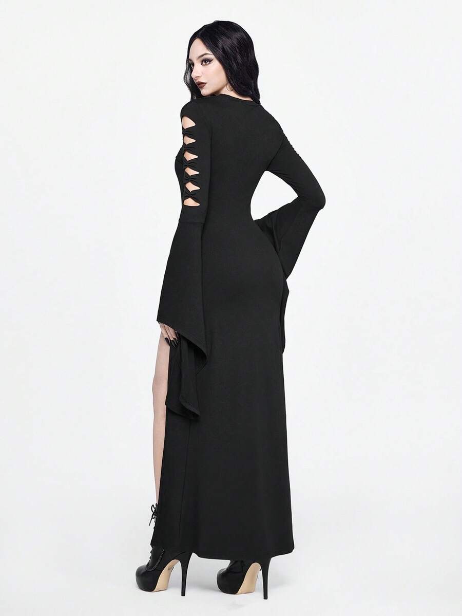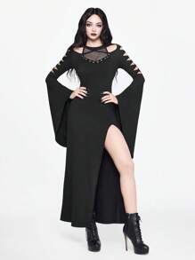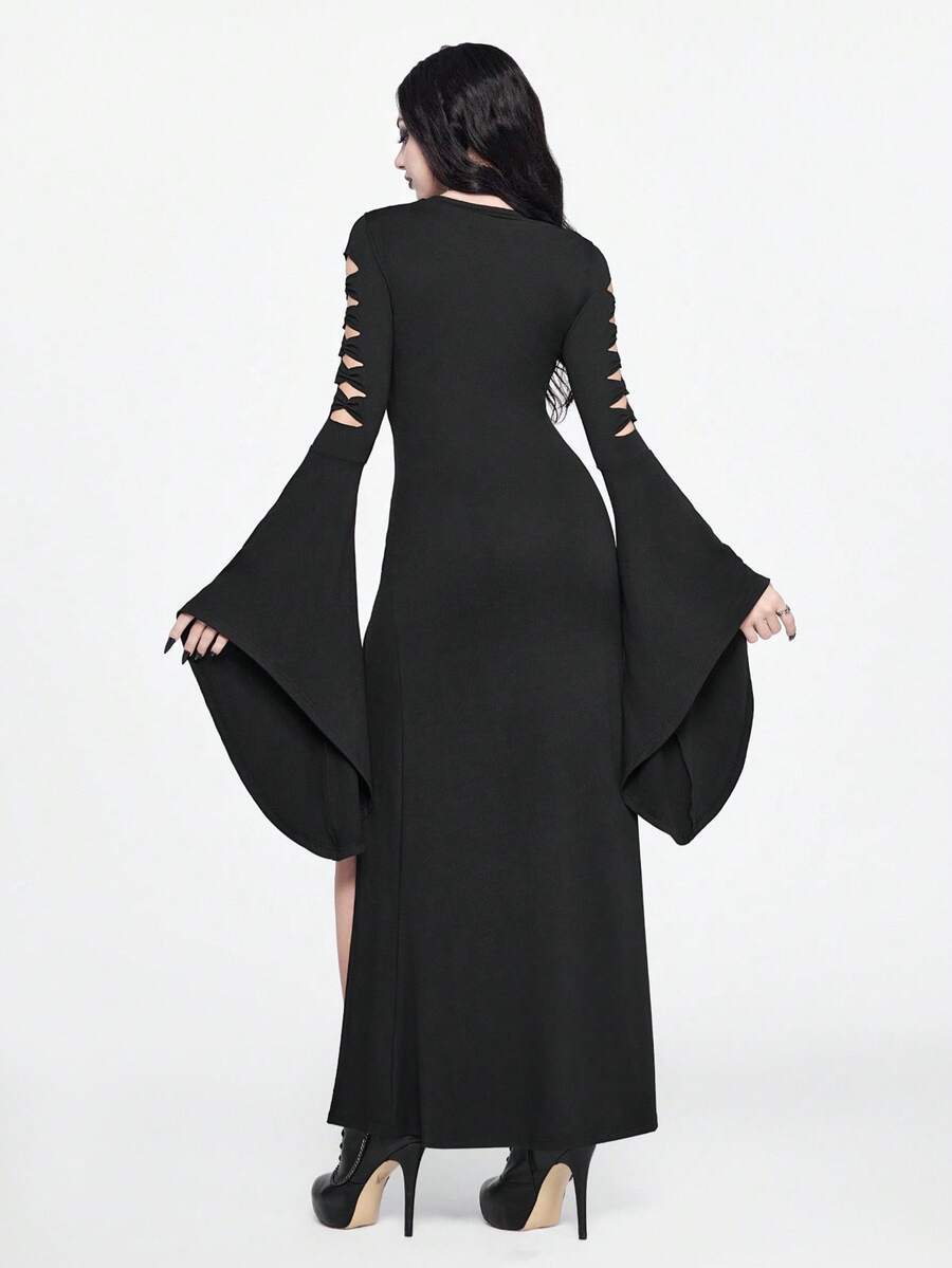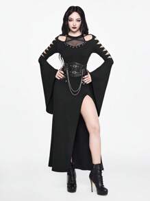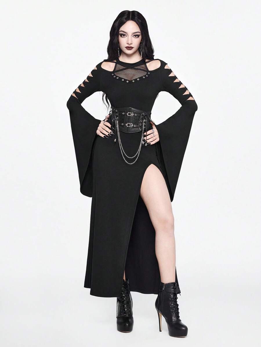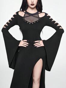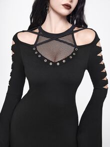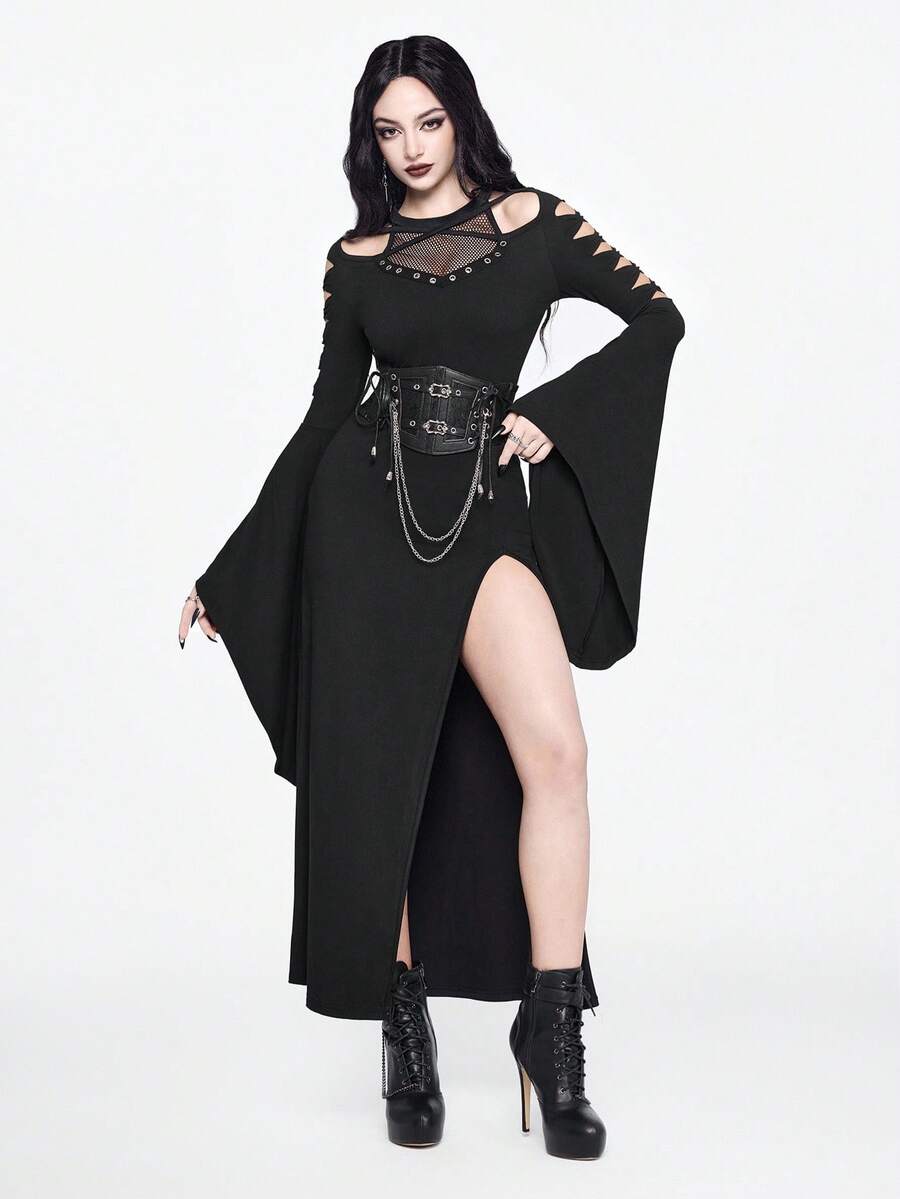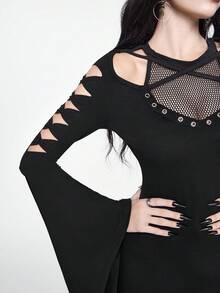 Goth Halloween Women Dress Dark Party Hollow Fishnet Flare Sleeve Dress For Women