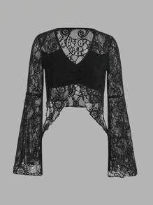 Goth Lace Flounce Sleeve Asymmetrical Hem Top