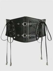 Goth Lace-Up PU Leather Crop Top & Belt Festival Party Wear